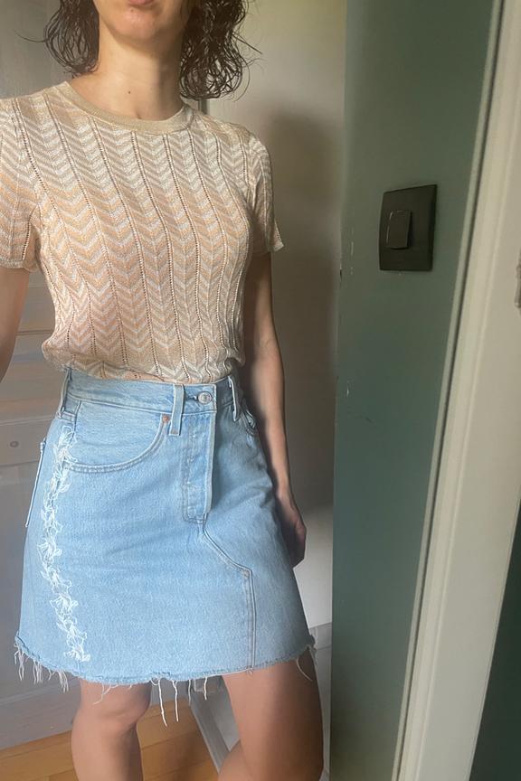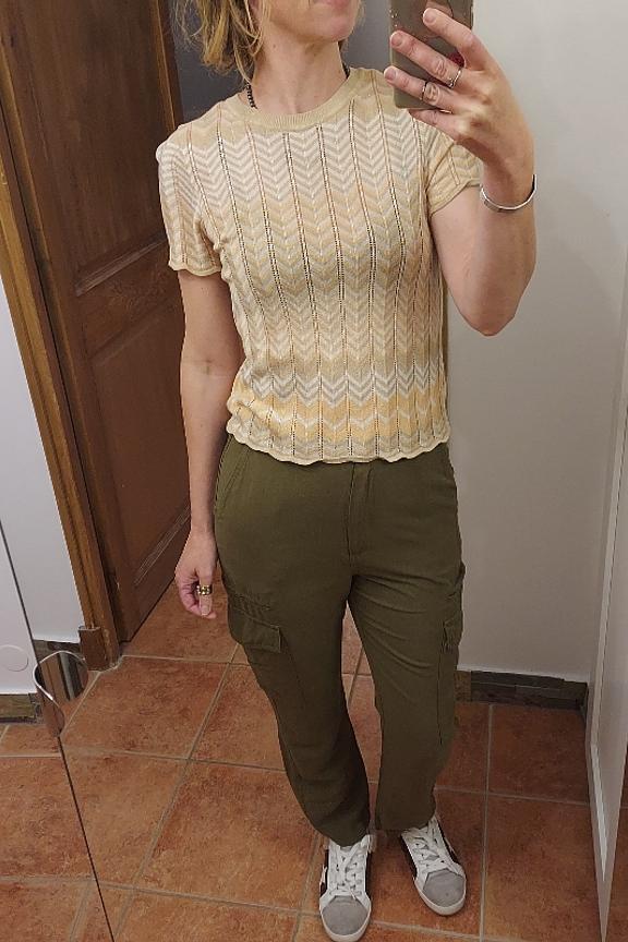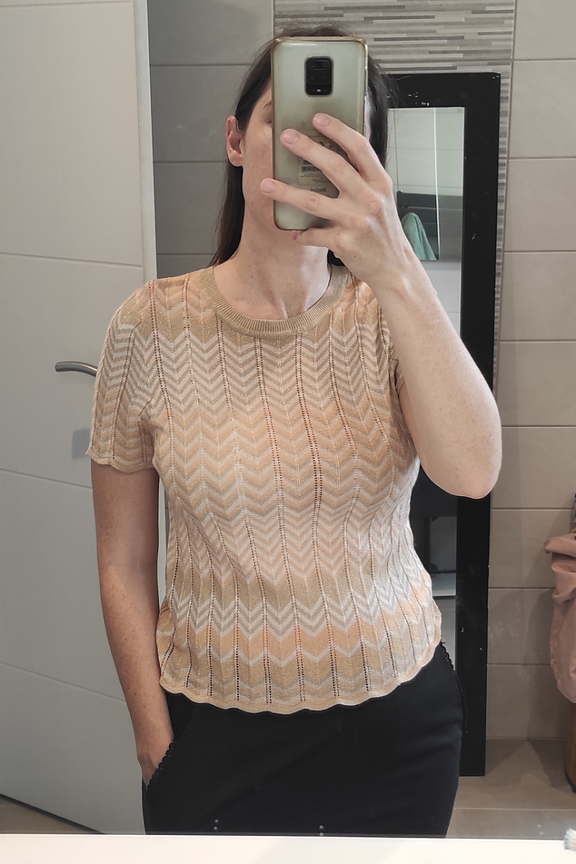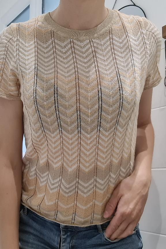 โข Top effet tie dye tons nude โข Encolure ronde โข Manches courtes โข Coupe droite et lรฉgรจrement prรจs du corps