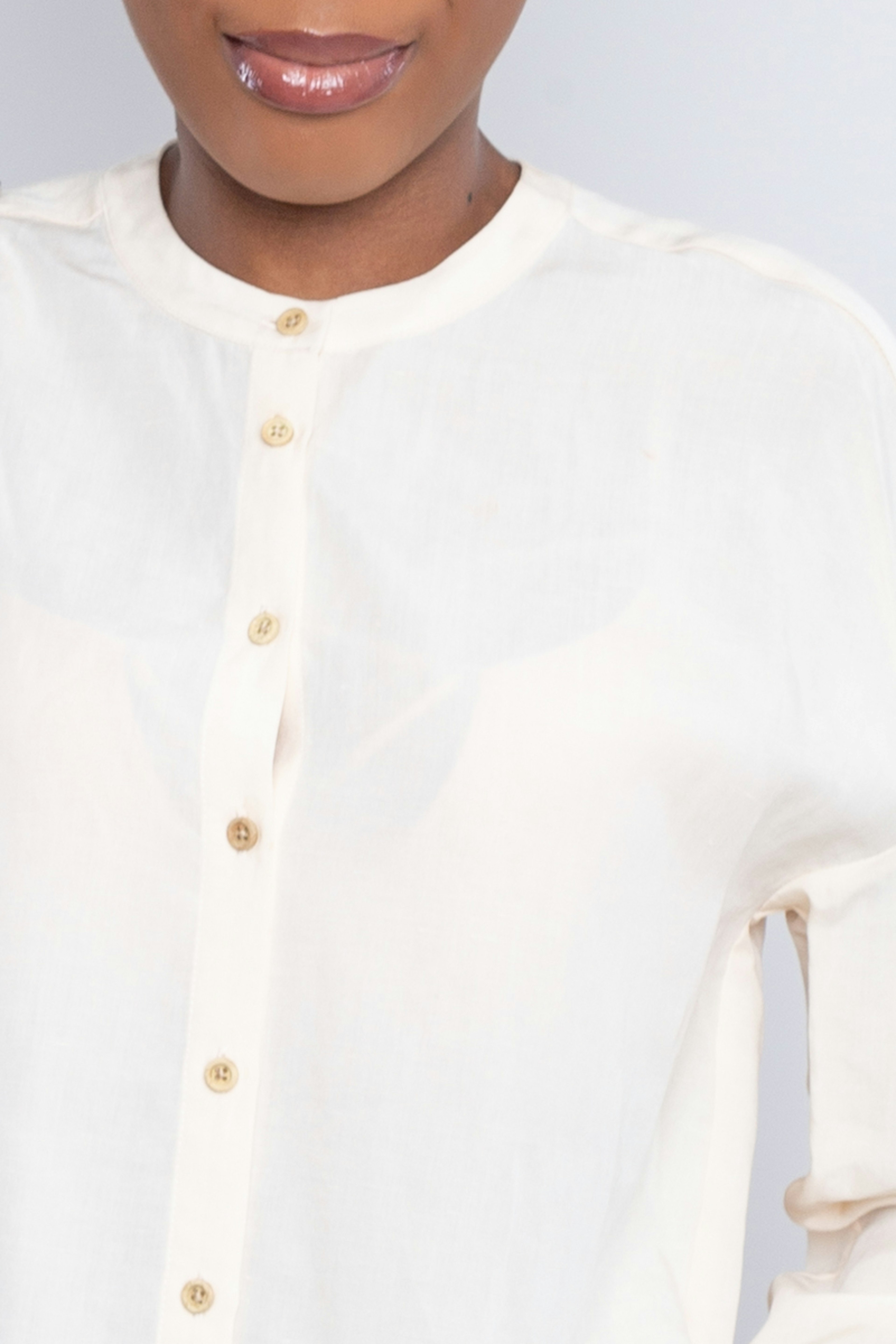 Confectionnรฉe dans un mรฉlange de lin et lyocell, cette chemise รฉpurรฉe ร la couleur tendre vous sรฉduira par sa douceur et ses dรฉtails travaillรฉs. โข Mรฉlange lin/tencel trรจs doux et respirant โข Chemise ร la coupe ample, col faรงon col Mao, fermรฉe par 8 boutons en bois โข Emmanchures descendues โข Lignes d'รฉpaules dรฉcorรฉes d'un empiรจcement ton-sur-ton soulignรฉes d'un liseret ton-sur-ton โข Poignets fermรฉs par un bouton en bois