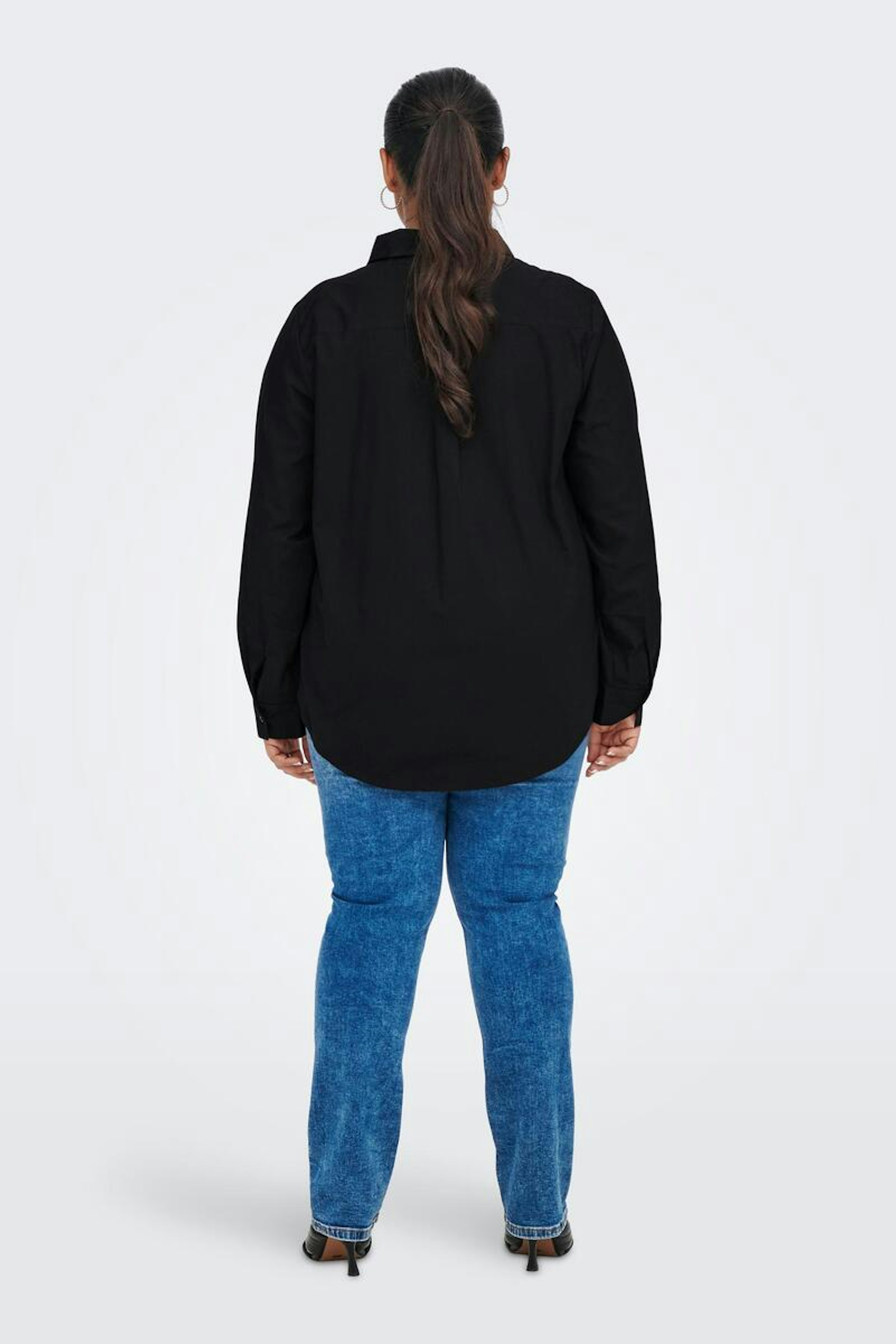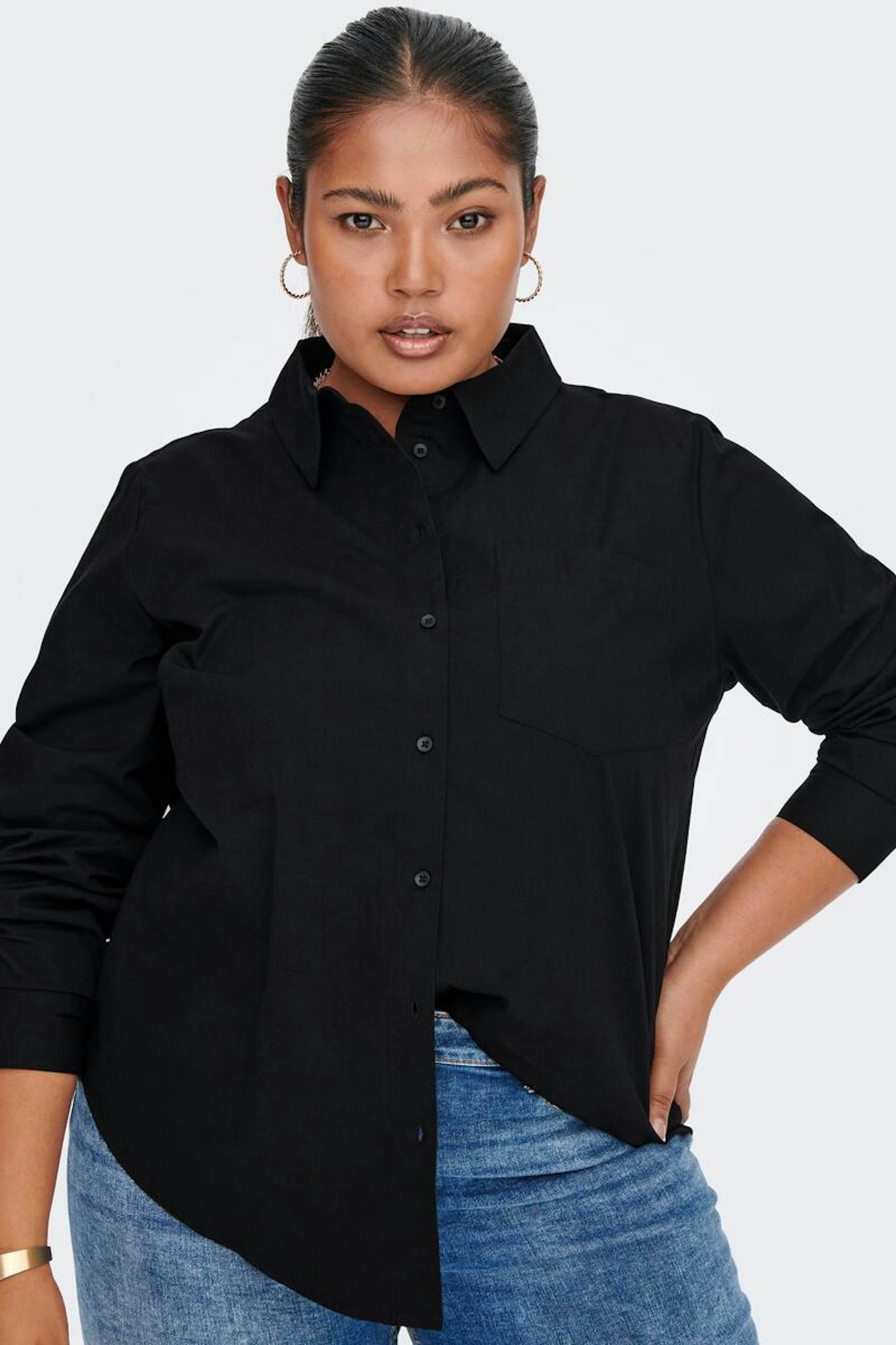 โข Chemise noire en coton โข Col ร revers โข Poche poitrine