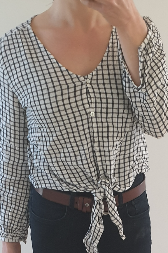 Craquez pour le chemisier ร carreaux en coton bio Cecile. Avec son noeud fantaisie et ses boutons nacre il apportera une touche jeune ร votre tenue.