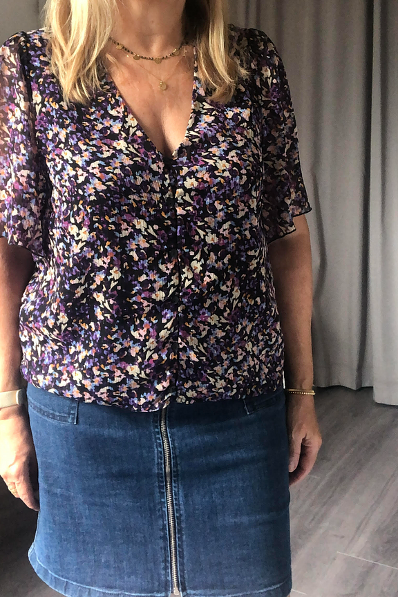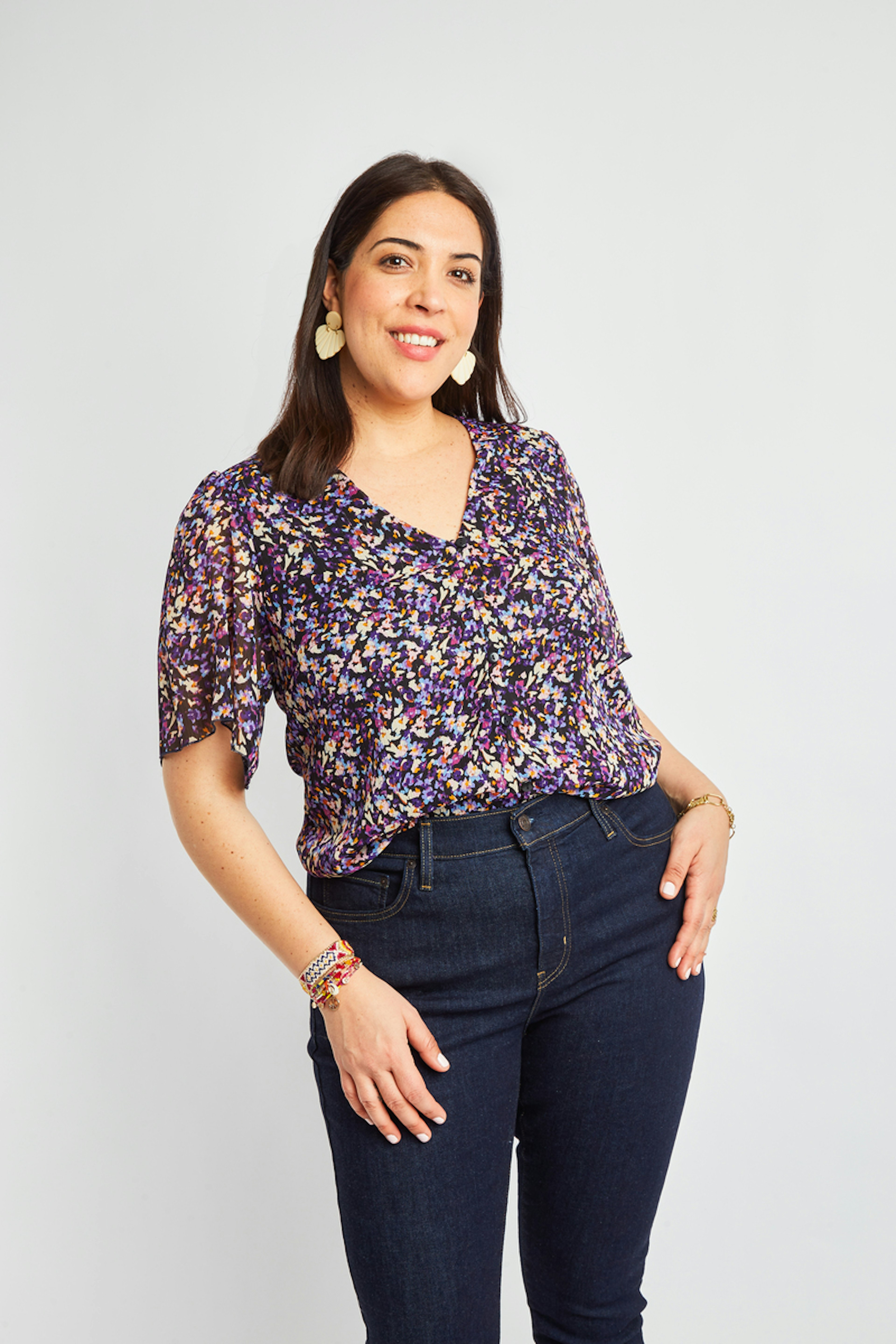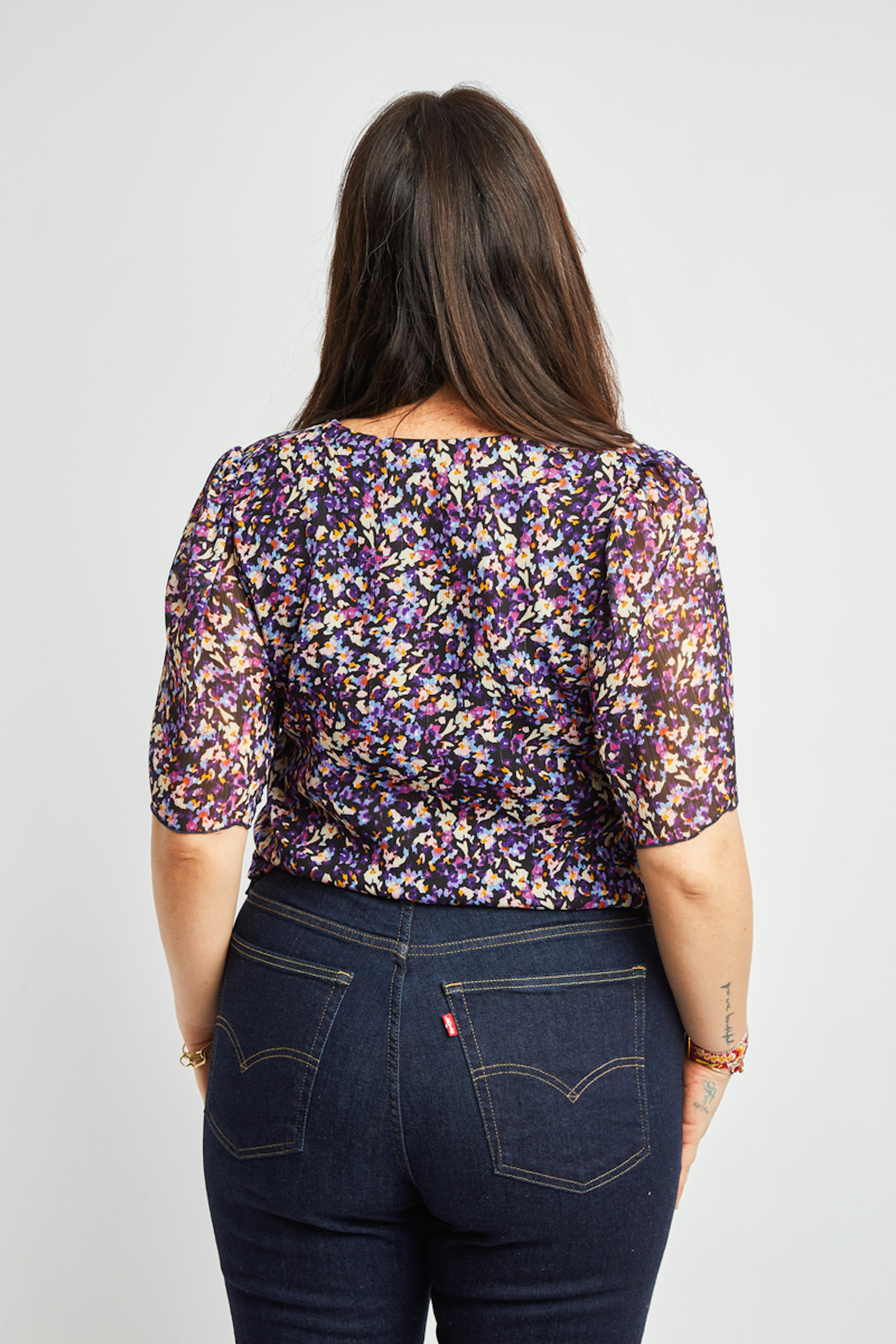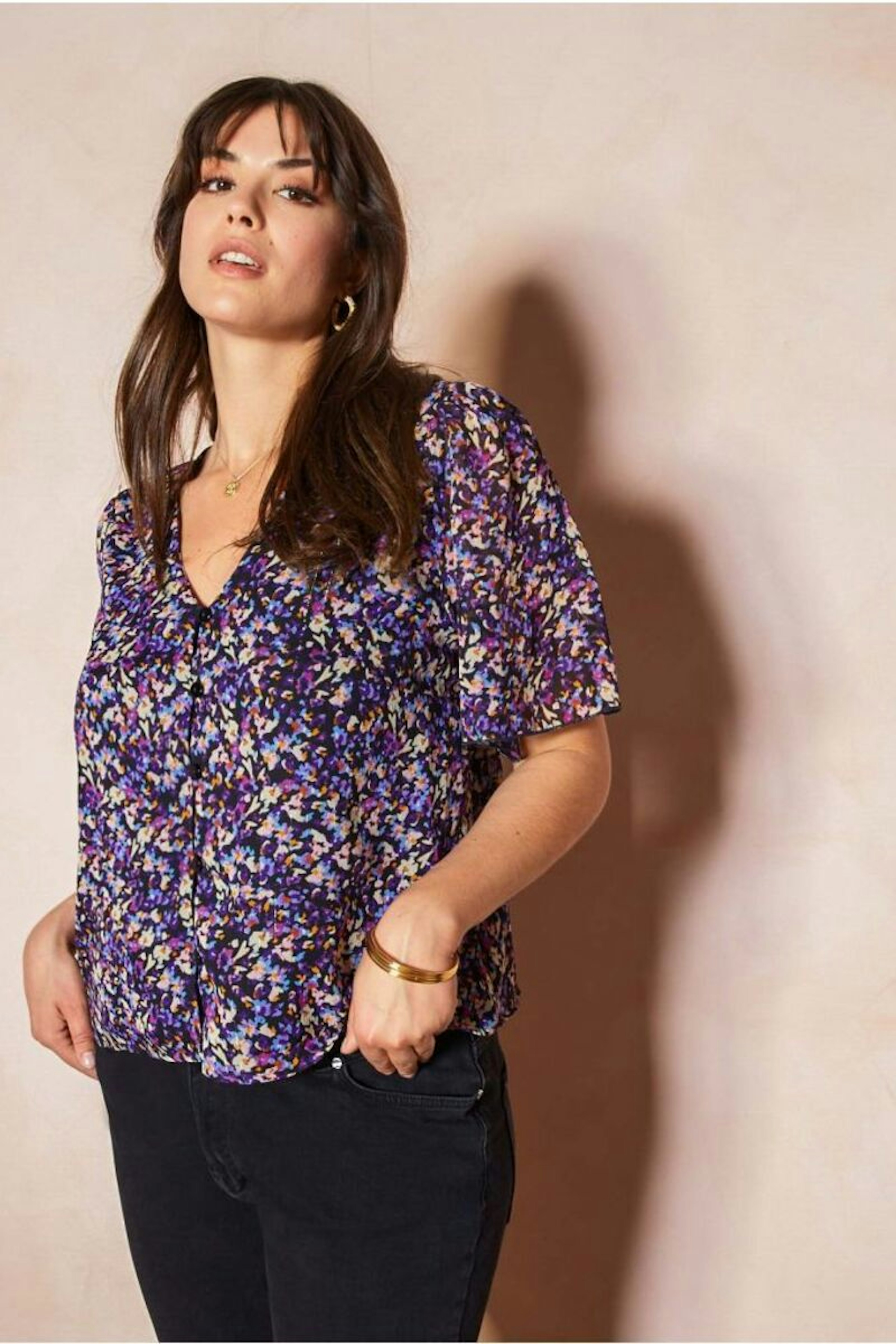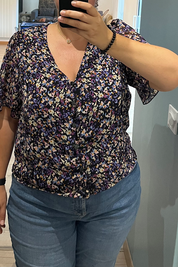 โข Fabrication Franรงaise / Marque franรงaise โข Blouse dรฉcolletรฉ avec manches papillons โข Dรฉcolletรฉe en V โข Boutonniรจre sur le devant โข Sara porte du 44/46 et mesure 1m79.