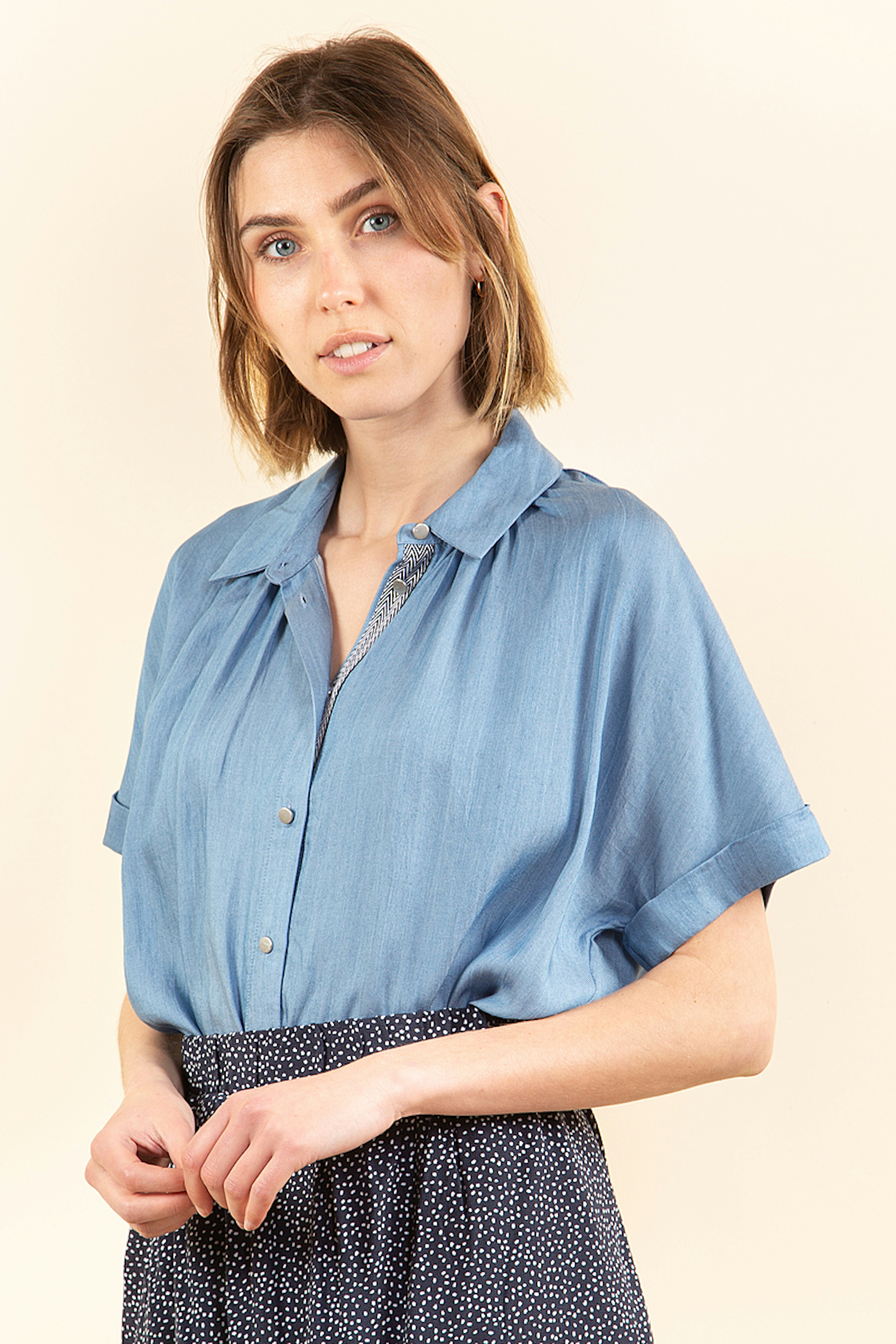 Craquez pour ce haut fluide en tencel. On aime sa coupe aux manches oversize et sa fluiditรฉ.