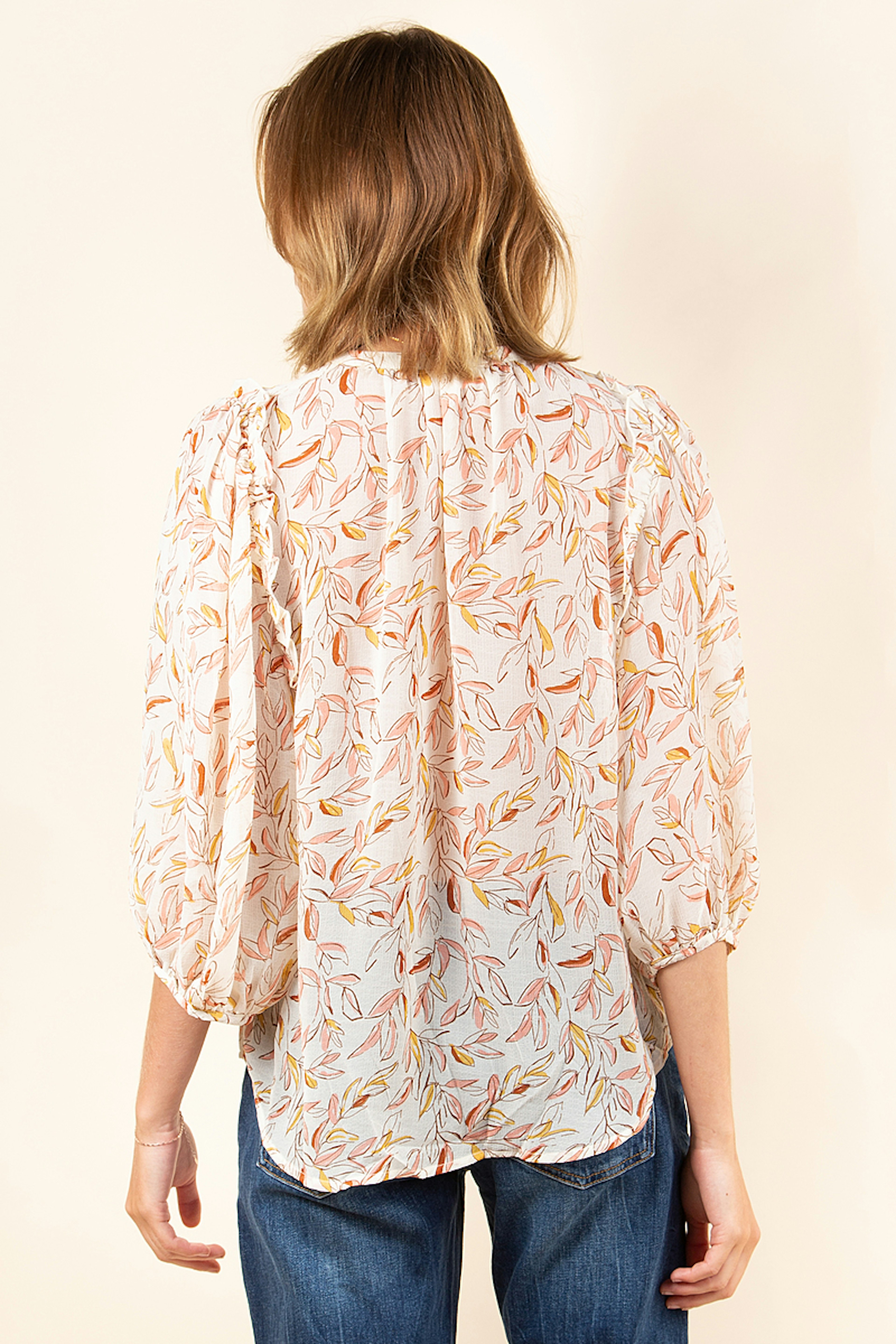 Craquez pour Diega, ce haut fรฉminin qui se porte au travail ou pour sortir. โข Chemisier ร manches bouffantes crรจme avec imprimรฉ floral orange โข Col officier qui se ferme ร l'aide de boutons nacre โข Tissu transparent