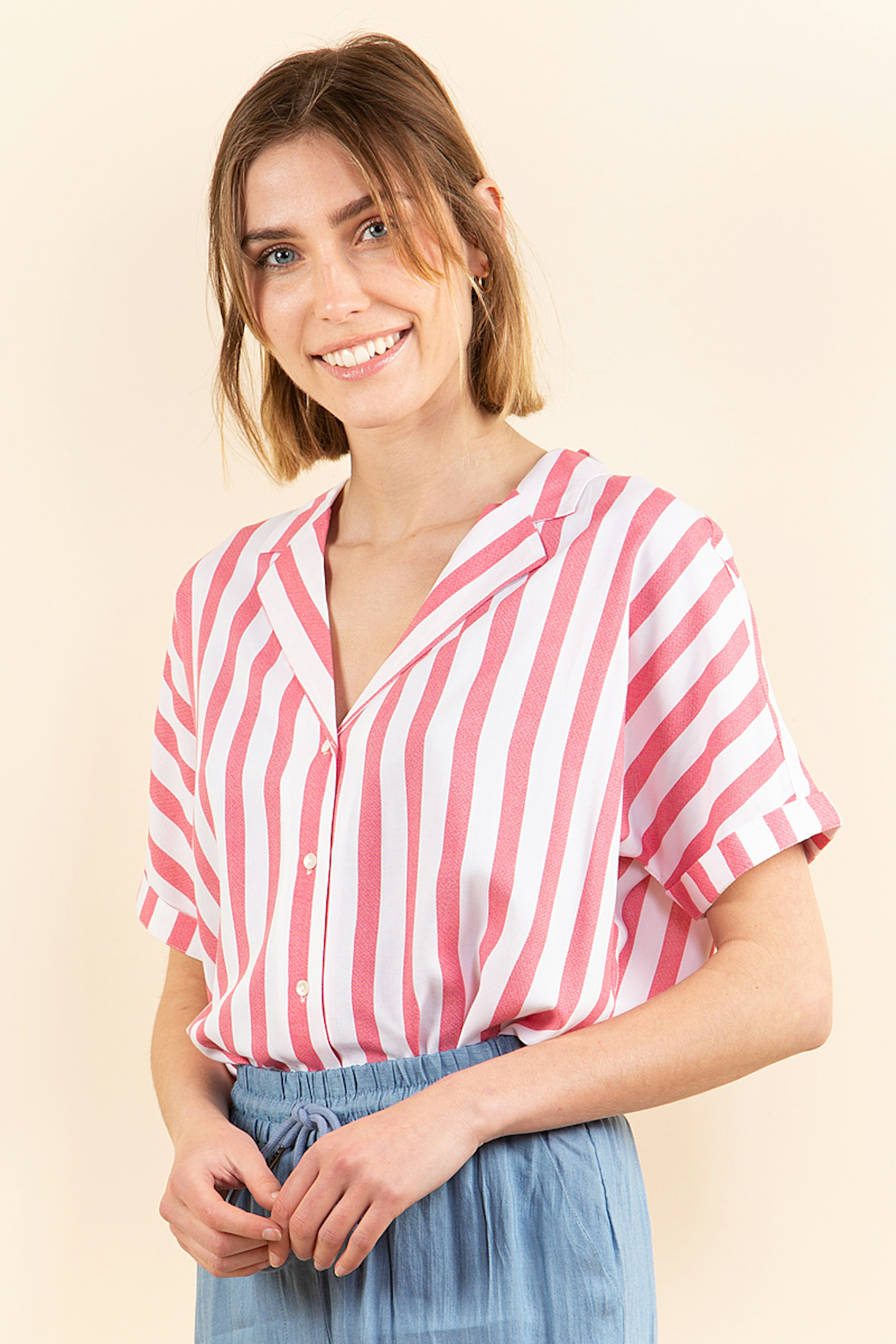 Optez pour ce top rayรฉ Euriel. On aime la fluiditรฉ de son tissu et son cรดtรฉ rรฉtro. A porter rentrรฉ dans un mom jean pour plus de style ou dans un short en jean taille haute.