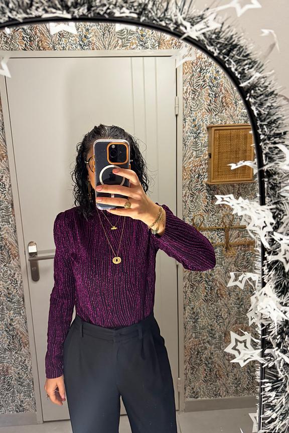 Ajoutez une touche de glamour ร votre tenue en l'associant ร un pantalon noir et des bottines en cuir pour un look chic d'hiver. โข Top ร manches longues โข Motif rayรฉ โข Coupe ajustรฉe flatteuse โข Effet scintillant sophistiquรฉ