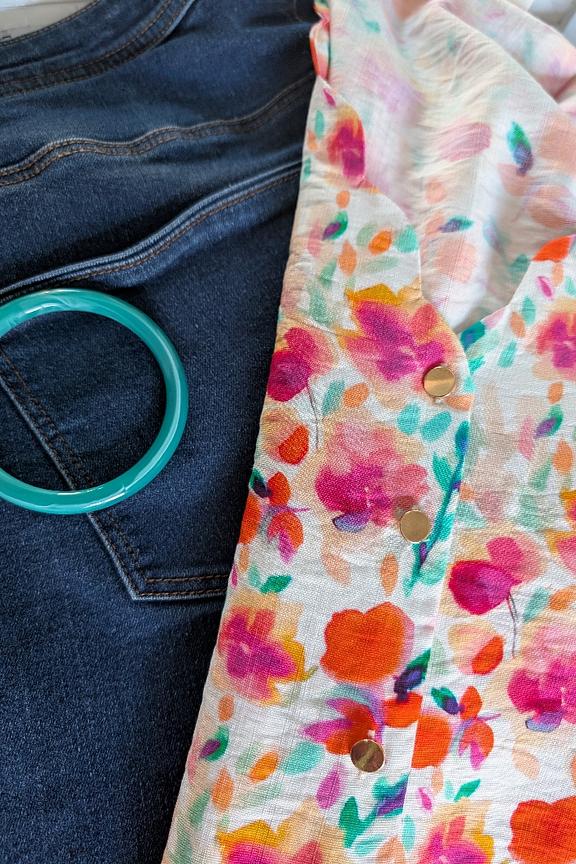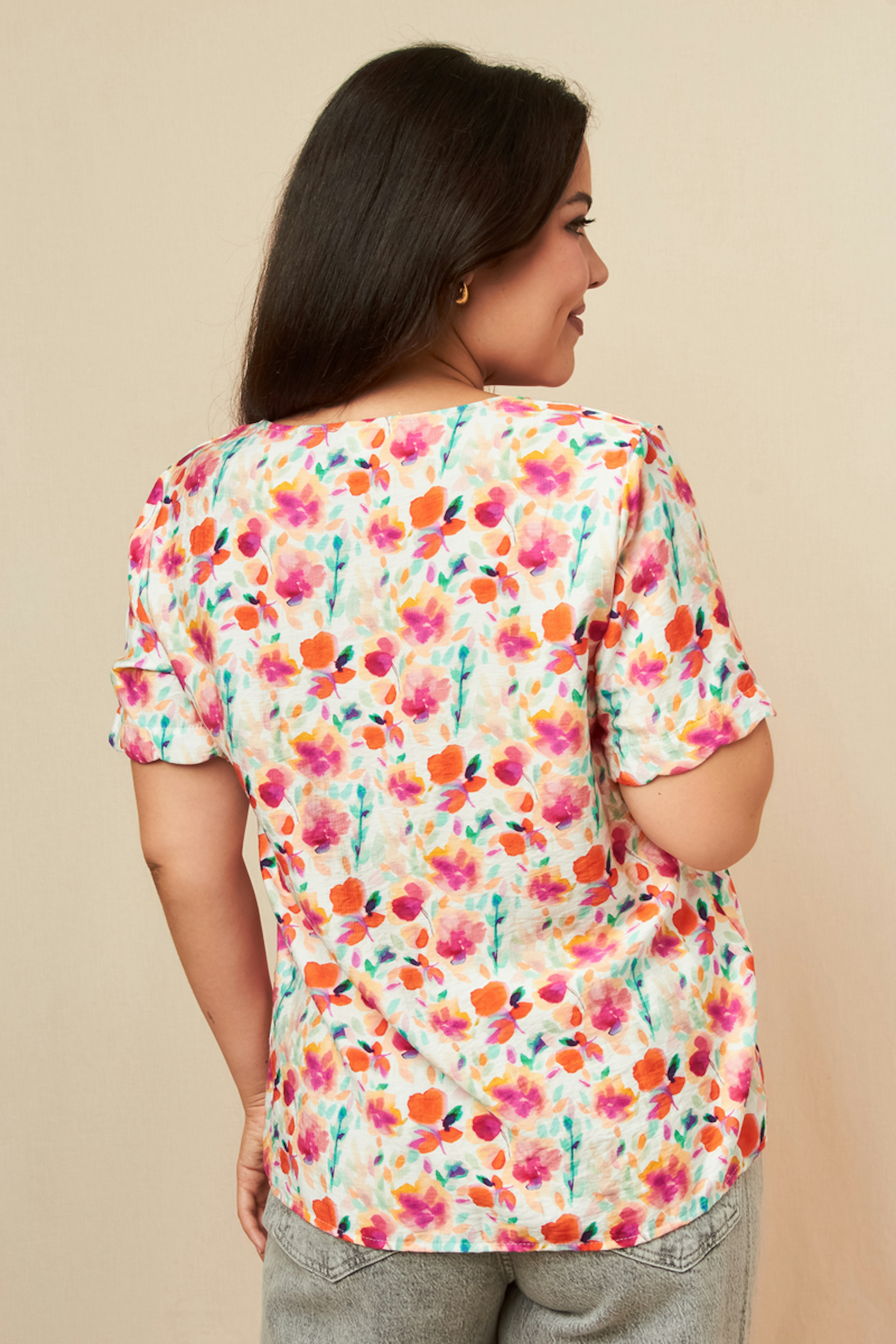 Associez ce haut à un pantalon blanc fluide et des sandales pour une balade estivale chic. • Blouse à motif floral • Décolleté en V • Manches courtes • Coupe légèrement cintrée • Tissu léger et aéré