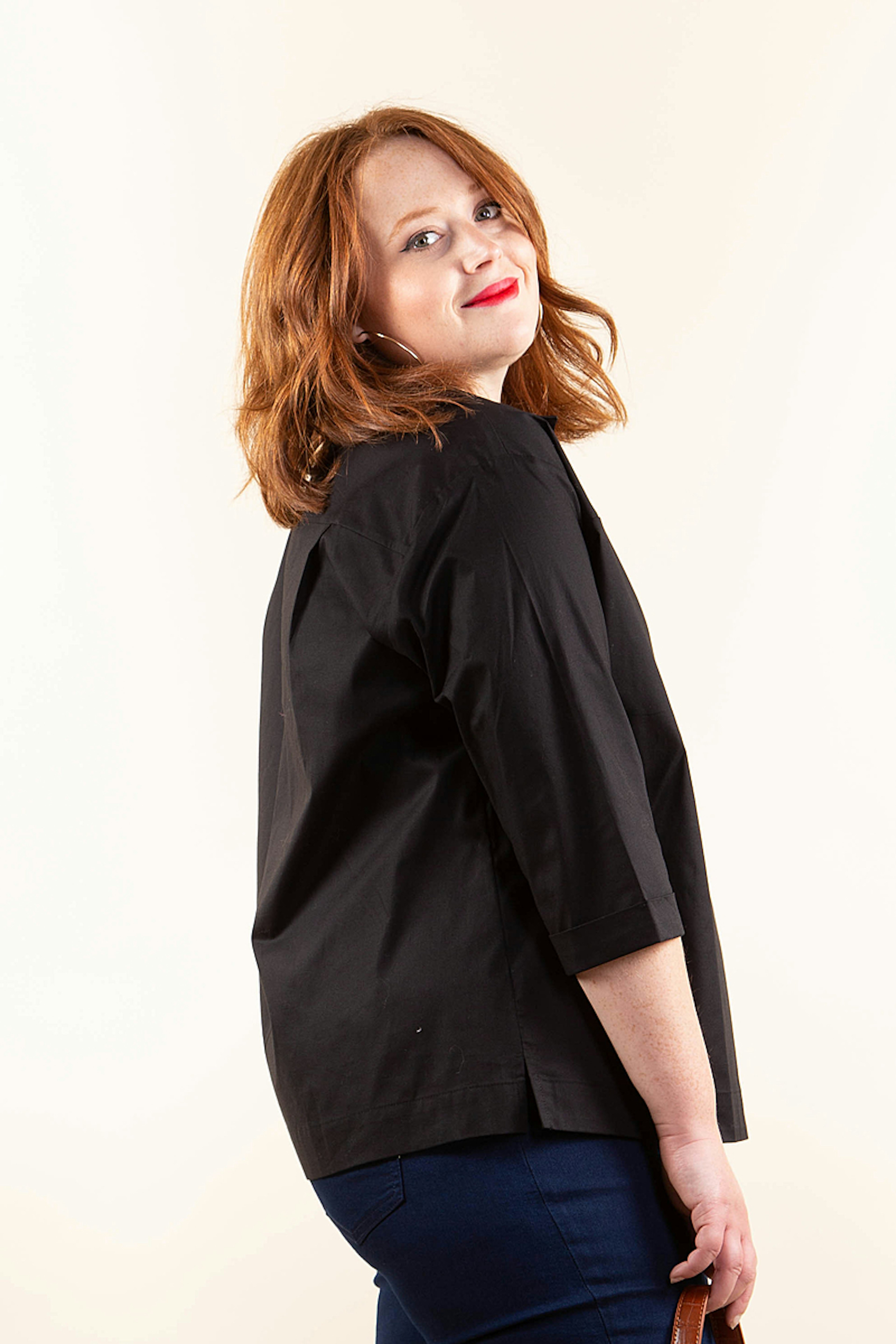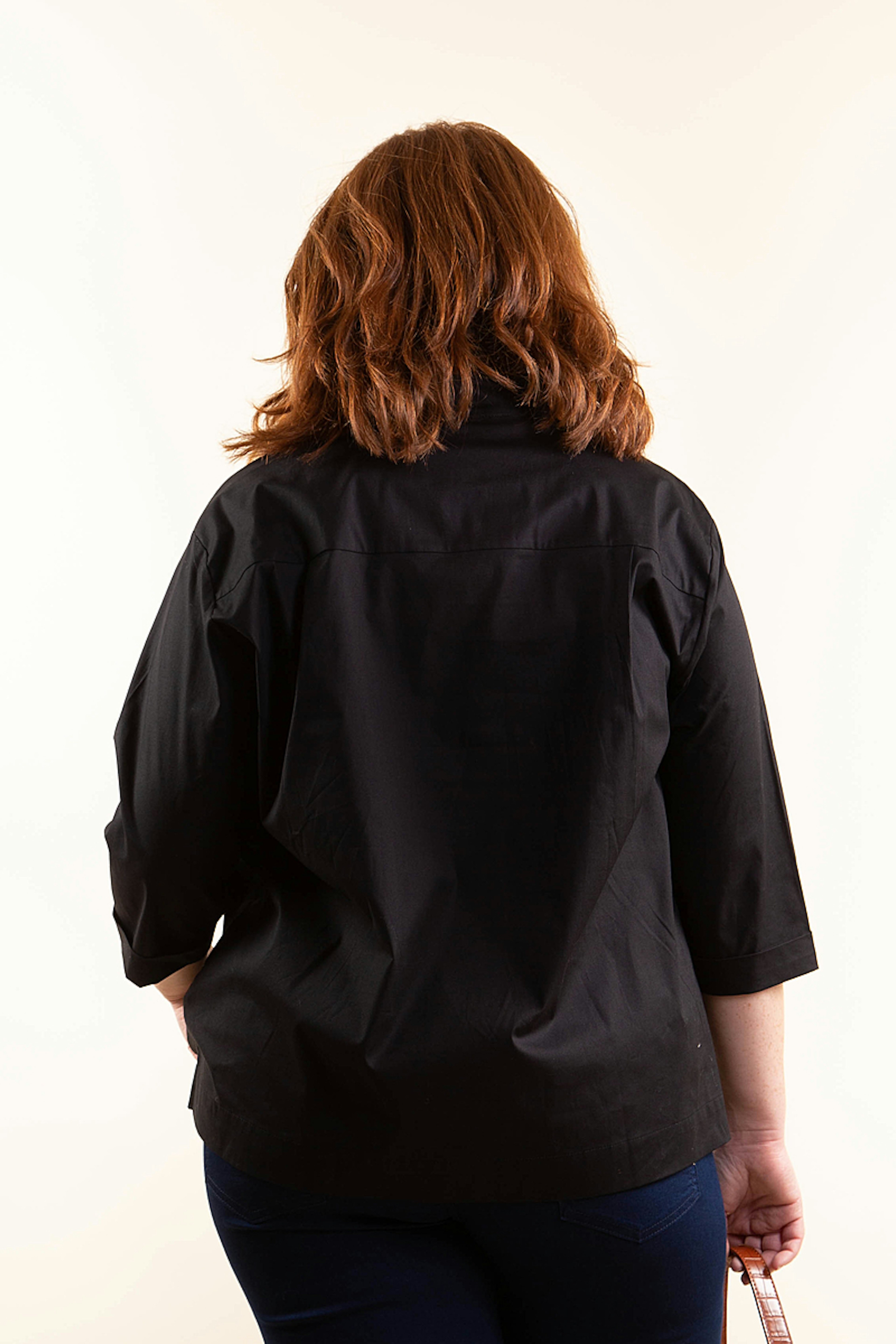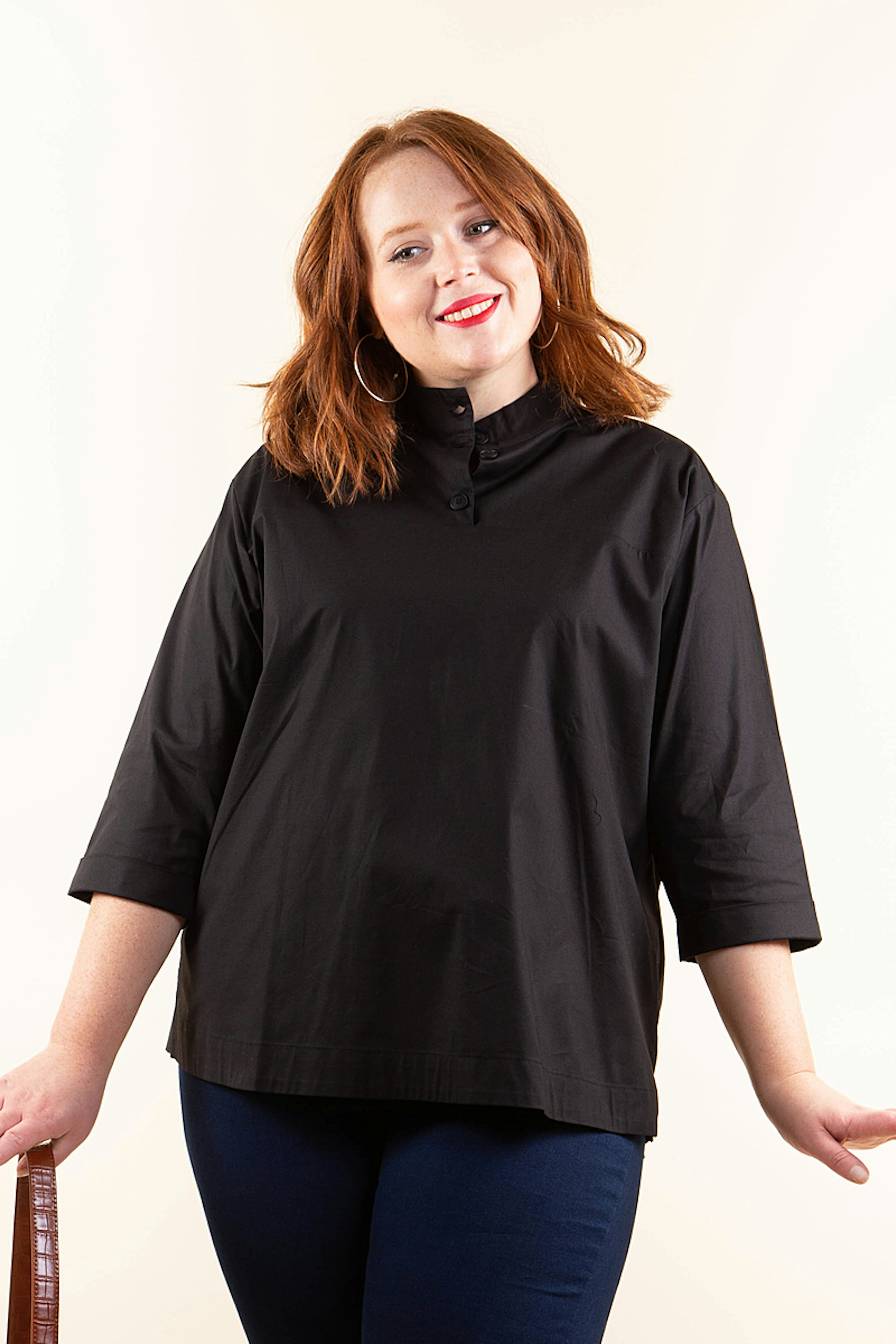 Craquez pour cette jolie blouse noire en coton et son col montant boutonnรฉ. On aime ses manches trois quarts lรฉgรจrement รฉvasรฉes.