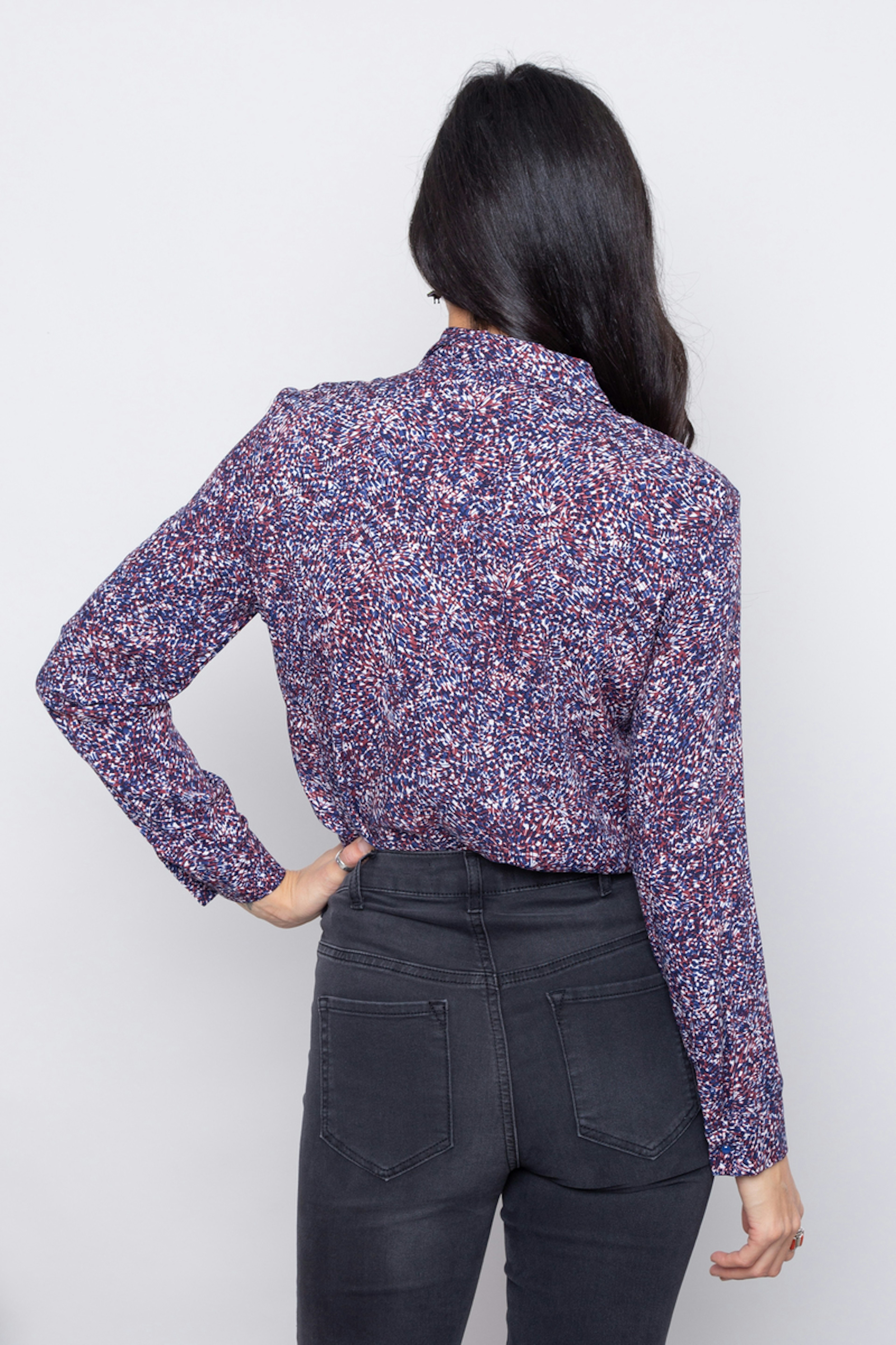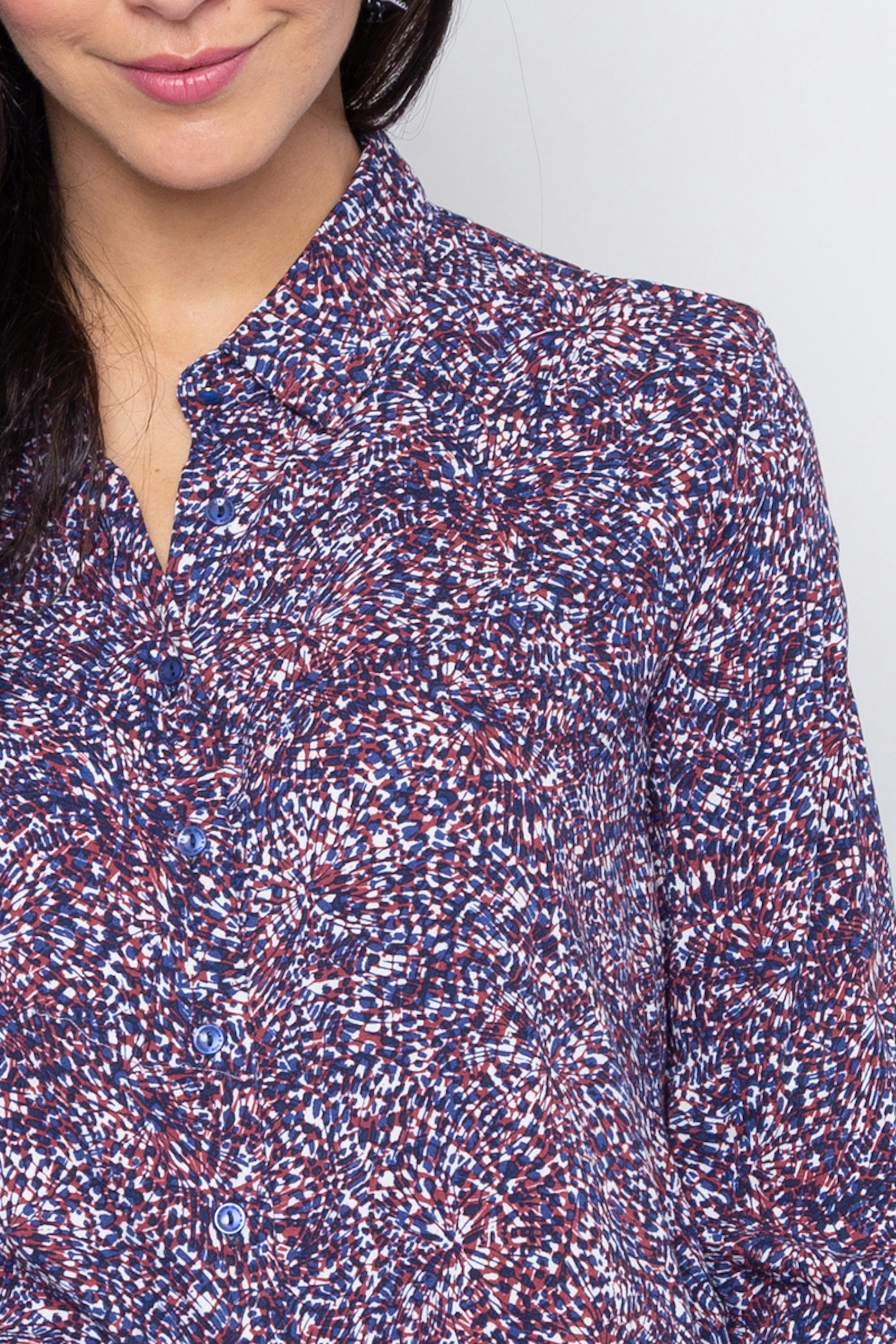 โ€ข Chemise avec imprimรฉs abstraits exclusifs Grace & Mila โ€ข Manches longues boutonnรฉe sur chaque poignet โ€ข Coupe droite โ€ข Col et patte de boutonnage classique