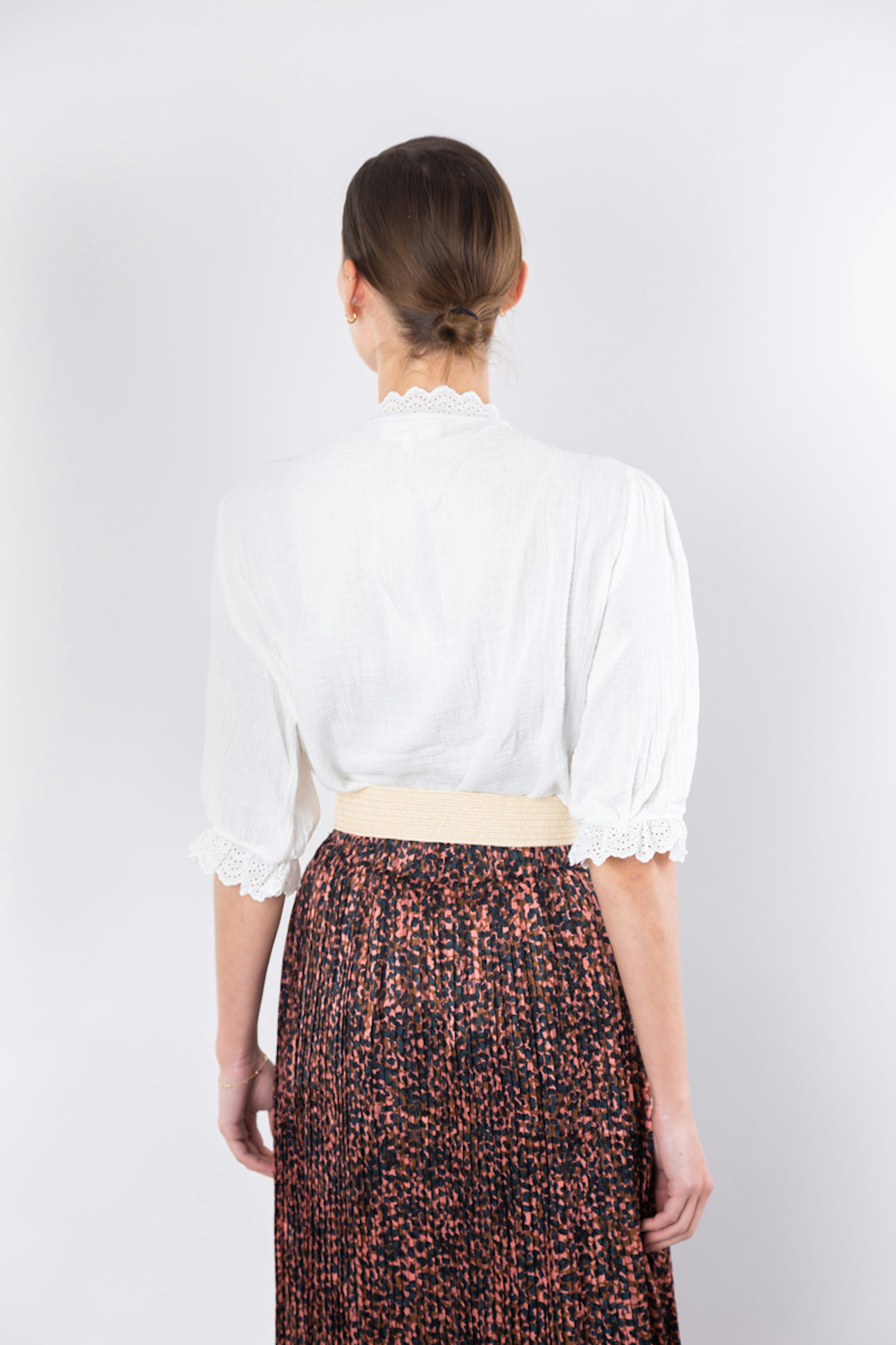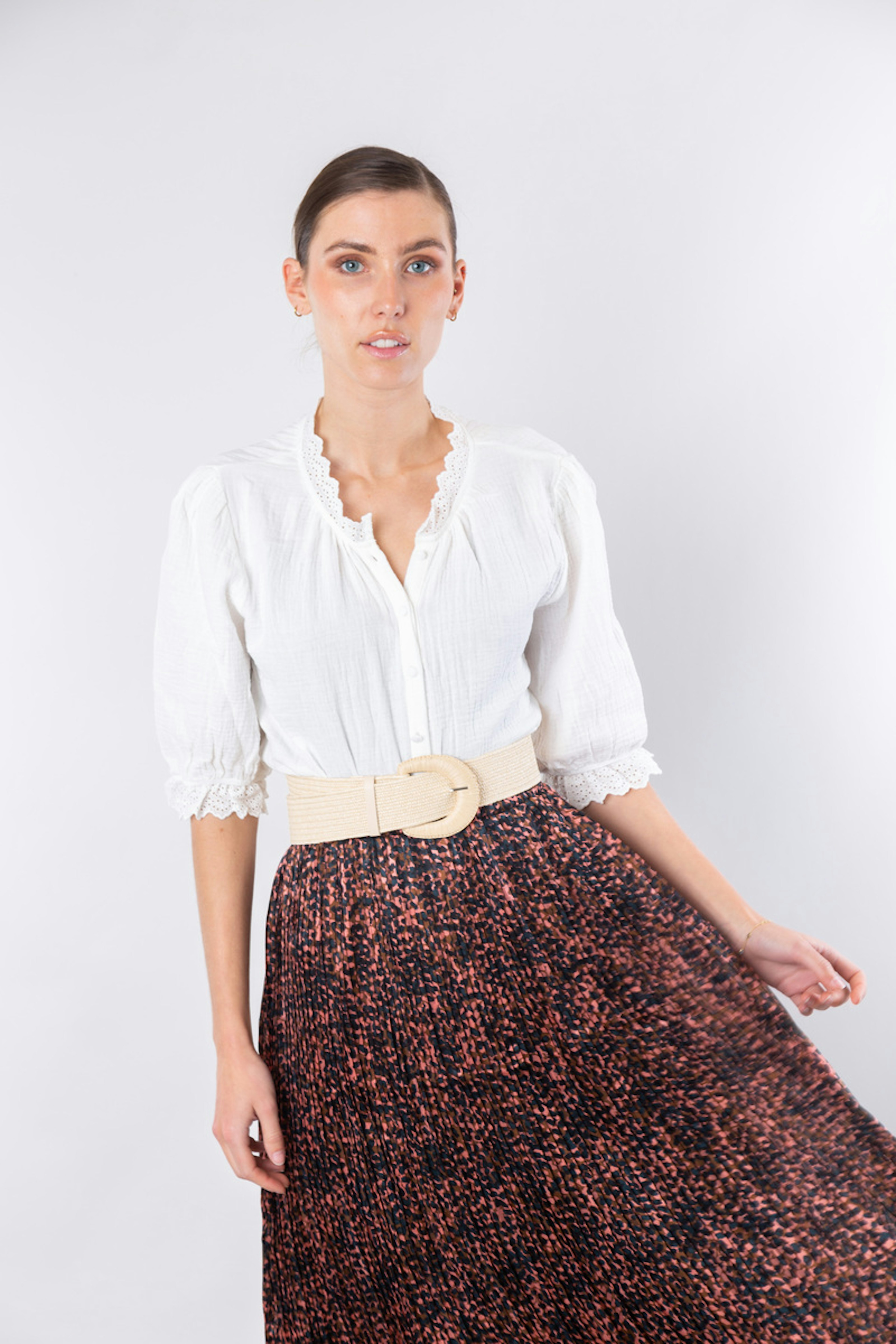 โข Notre blouse en gaz de coton blanc est l'รฉlรฉgance mรชme de notre garde-robe โข Ses manches bouffantes 3/4 avec รฉlastiques aux poignets apportent un cรดtรฉ chic et bohรจme ร cette piรจce iconique G&M โข Les dรฉtails de dentelles aux poignets et ร l'encolure ajoutent un cรดtรฉ raffinรฉ ร votre look โข La coupe classique ajoutรฉ ร la patte de boutonnage ajoutent du professionnalisme ร votre tenue