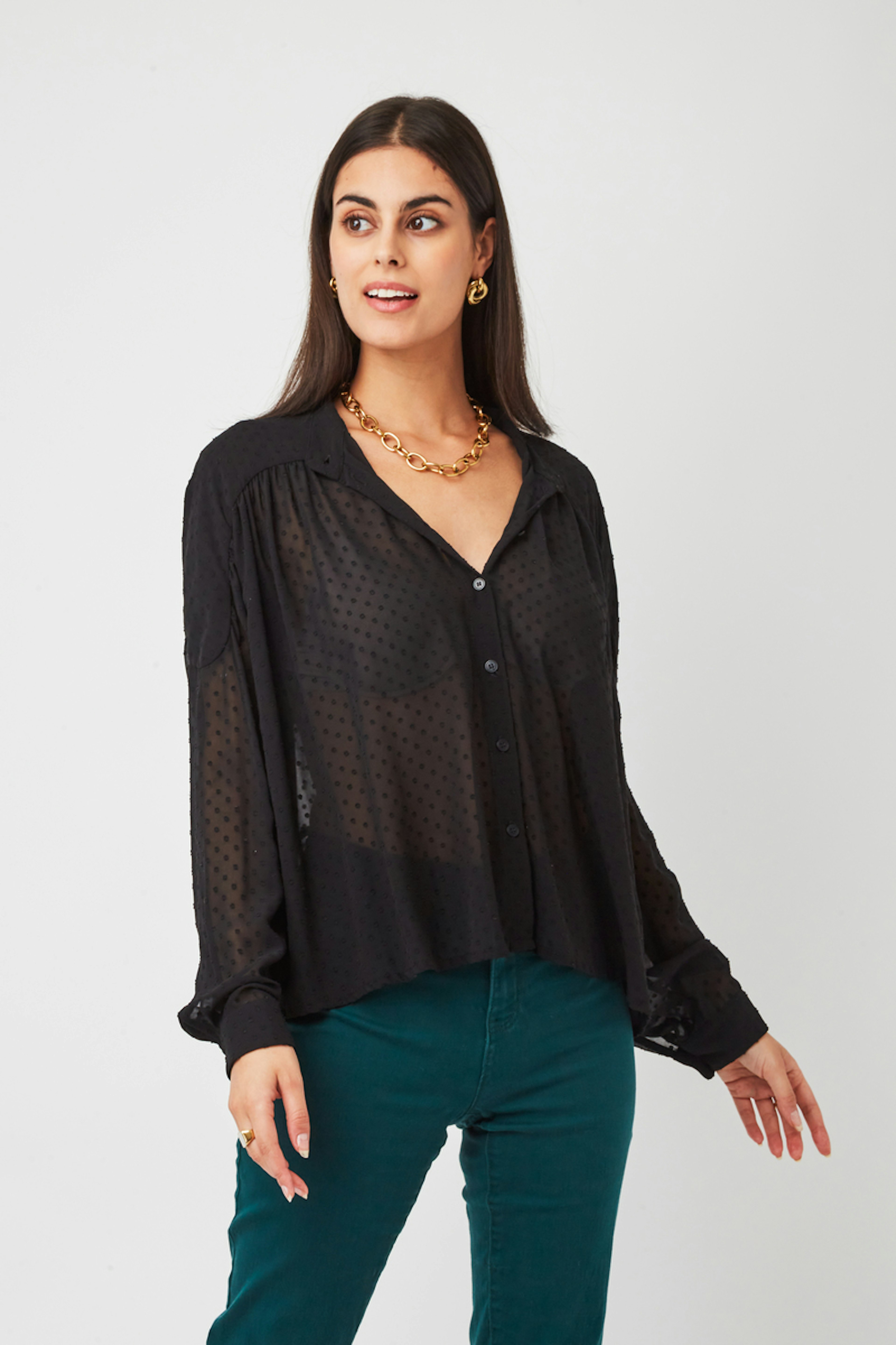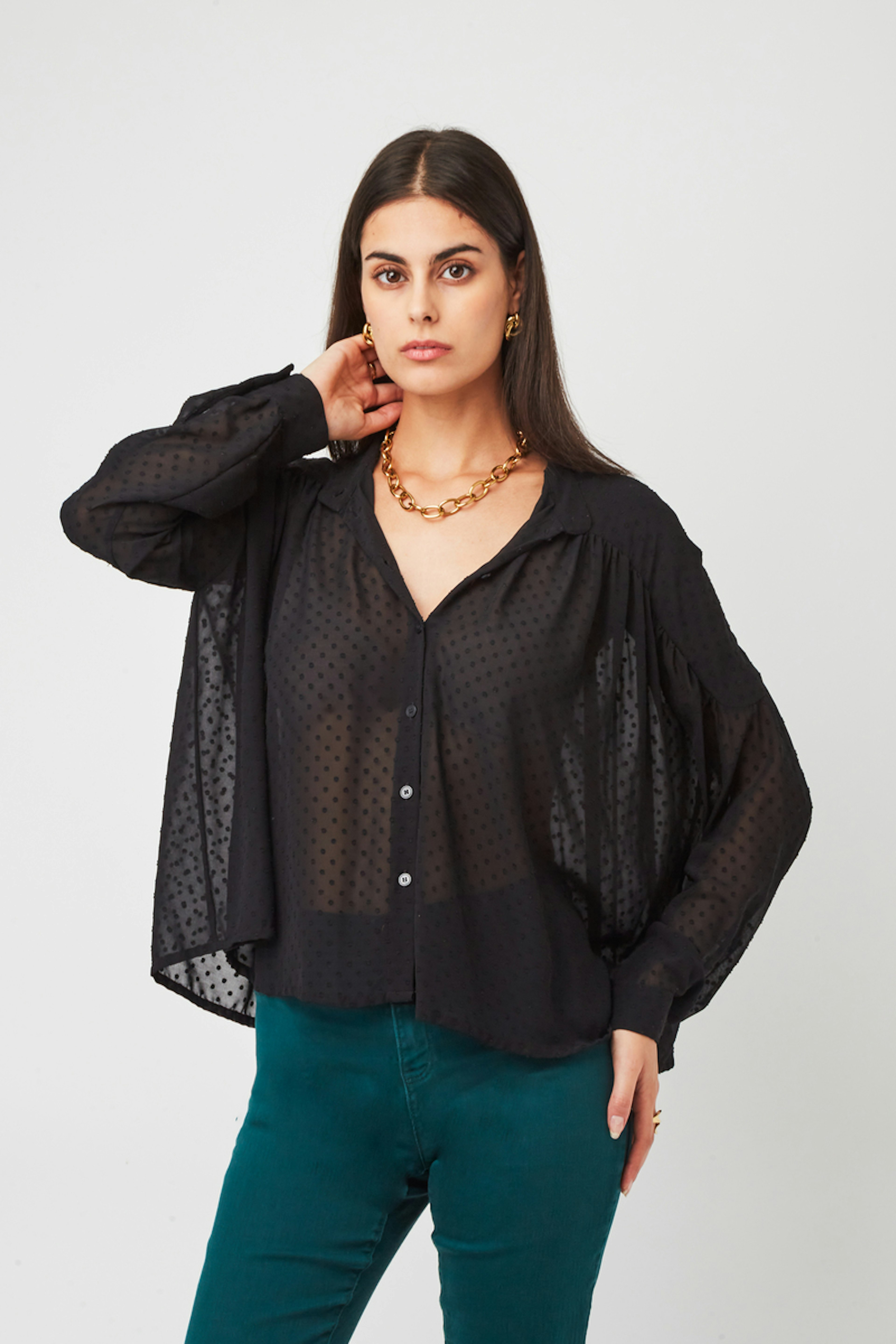 โ€œLe chemisier est joli et a un bel effet de transparence.โ€