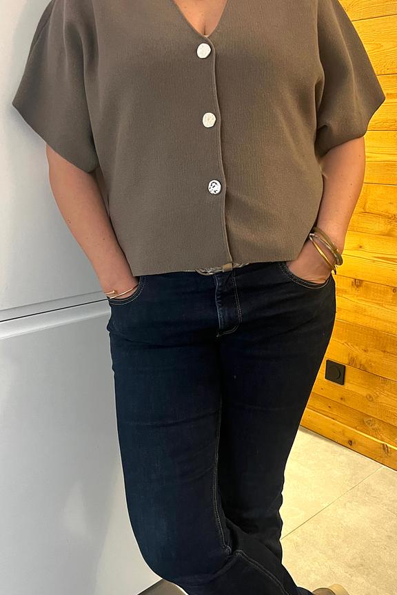 Associez ce haut à un jean taille haute et des bottines pour un look tendance et décontracté. • Chemise à manches courtes • Col en V flatteur • Coupe ample et confortable • Fermeture boutonnée élégante • Texture douce au toucher