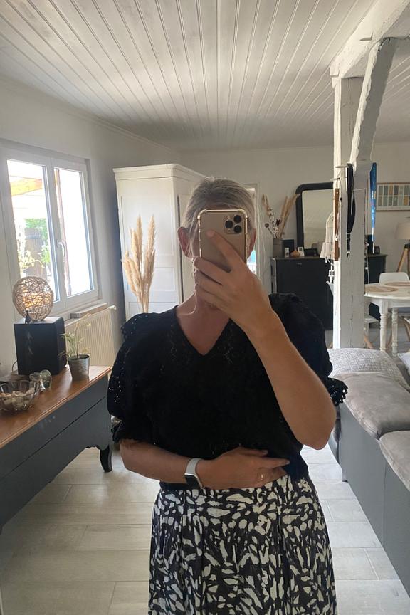 โHaut sympa et original. Un peu court mais sympa avec un pantalon taille hauteโ