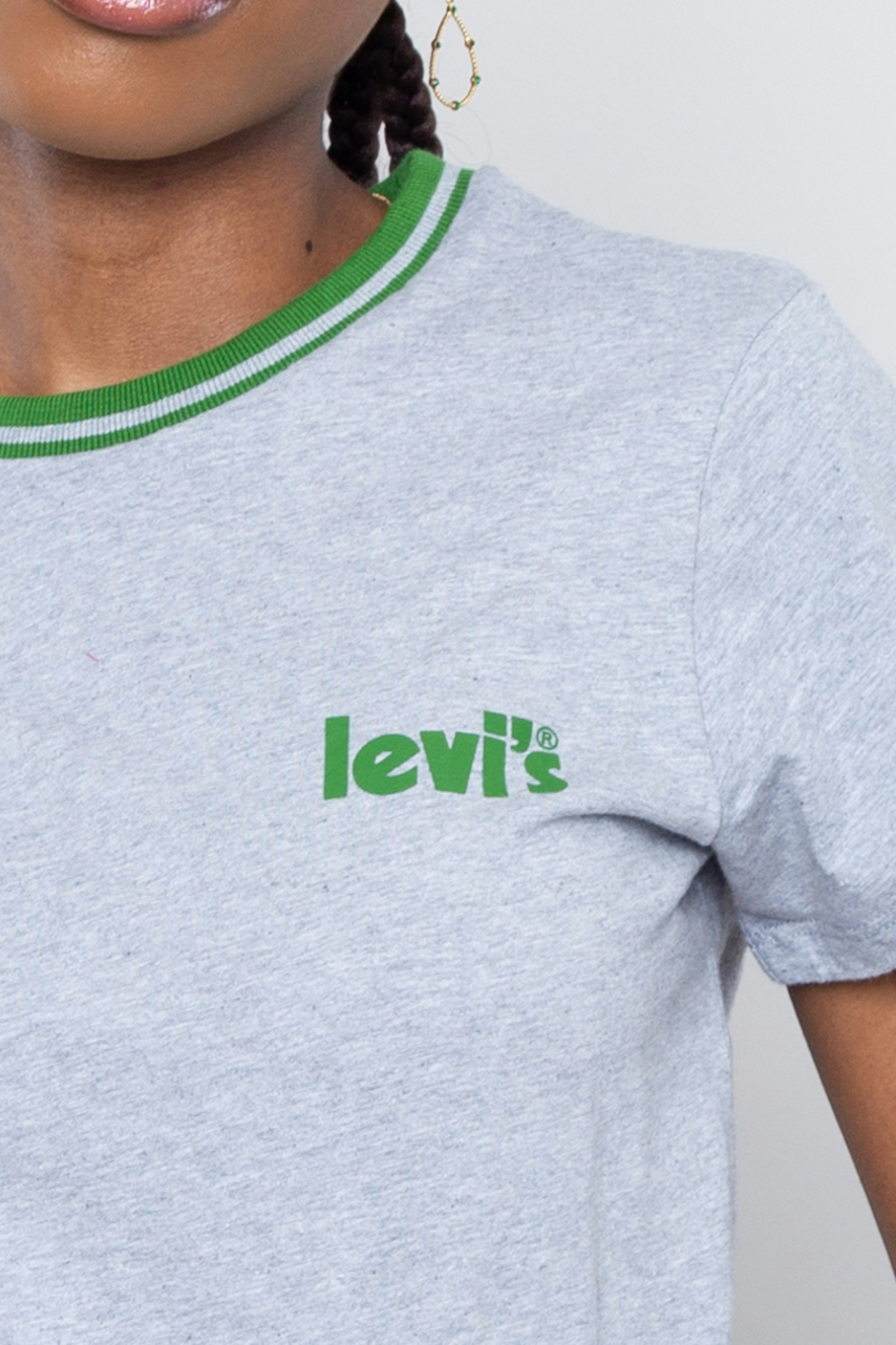 โข T-shirt gris chinรฉ ร manches courtes โข Manches et col contrastรฉ vert โข Logo "Levi'sยฎ" sรฉrigraphiรฉ sur la poitrine en blanc โข A porter sous une chemise en jean