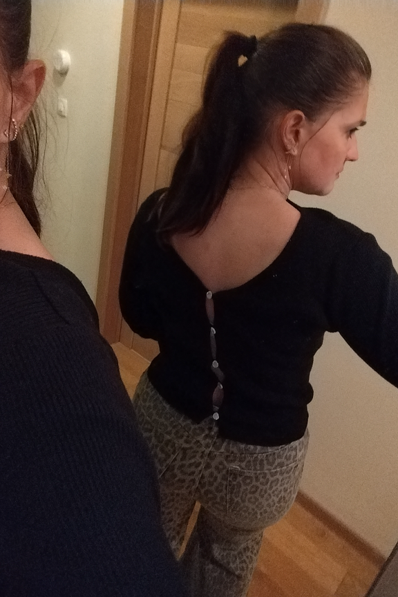 “Très joli porté à l'envers avec les boutons dans le dos. Deux fois plus d'occasions de porter ce joli haut.”