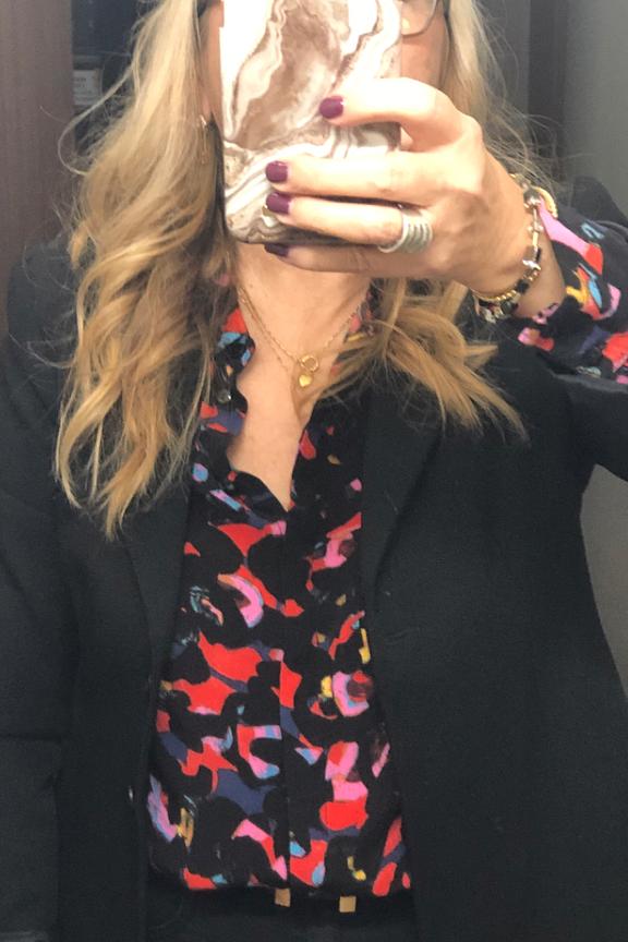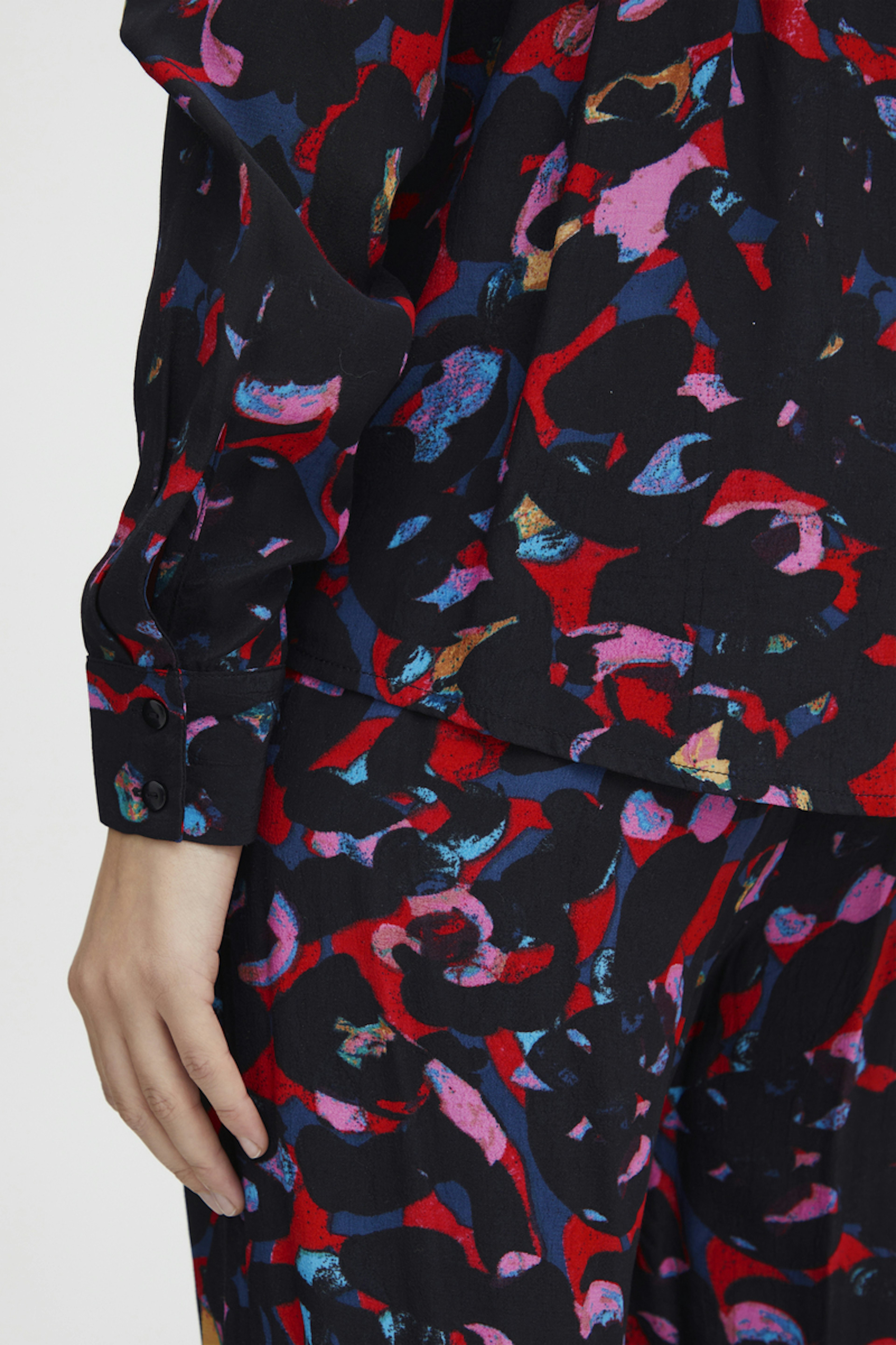 โข Le Chemisier Kimli de chez Ichi saura vous charmer en apportant un brin d'originalitรฉ ร vos tenues grรขce ร son motif graphique intรฉgrale โข Son col pointu et les manches longues boutonnรฉes structurent la piรจce pour un look soft et professionnel โข Le jeu de plis dans le dos apporte de la sophistication ร l'ensemble
