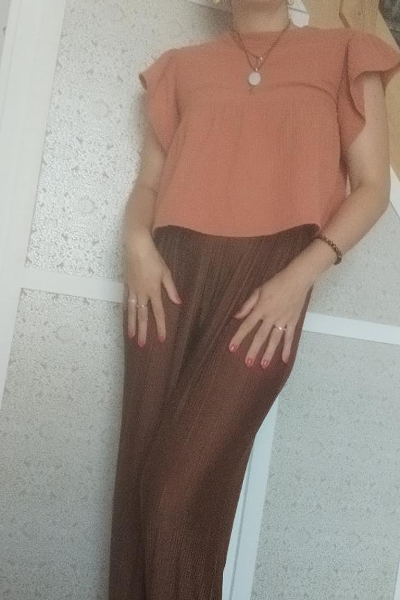 โข Col rond โข Manches ร volants โข Dรฉcoupe avec fronces au niveau de la poitrine โข Goutte dans le dos pour faciliter l'essayage โข Gaze de coton terracotta โข 100%ย gaze de cotonย biologique Oeko-Tex et GOTS โข Ce modรจle a tendance ร tailler petit, nous vous conseillons de prendre une taille au-dessus de votre taille habituelle