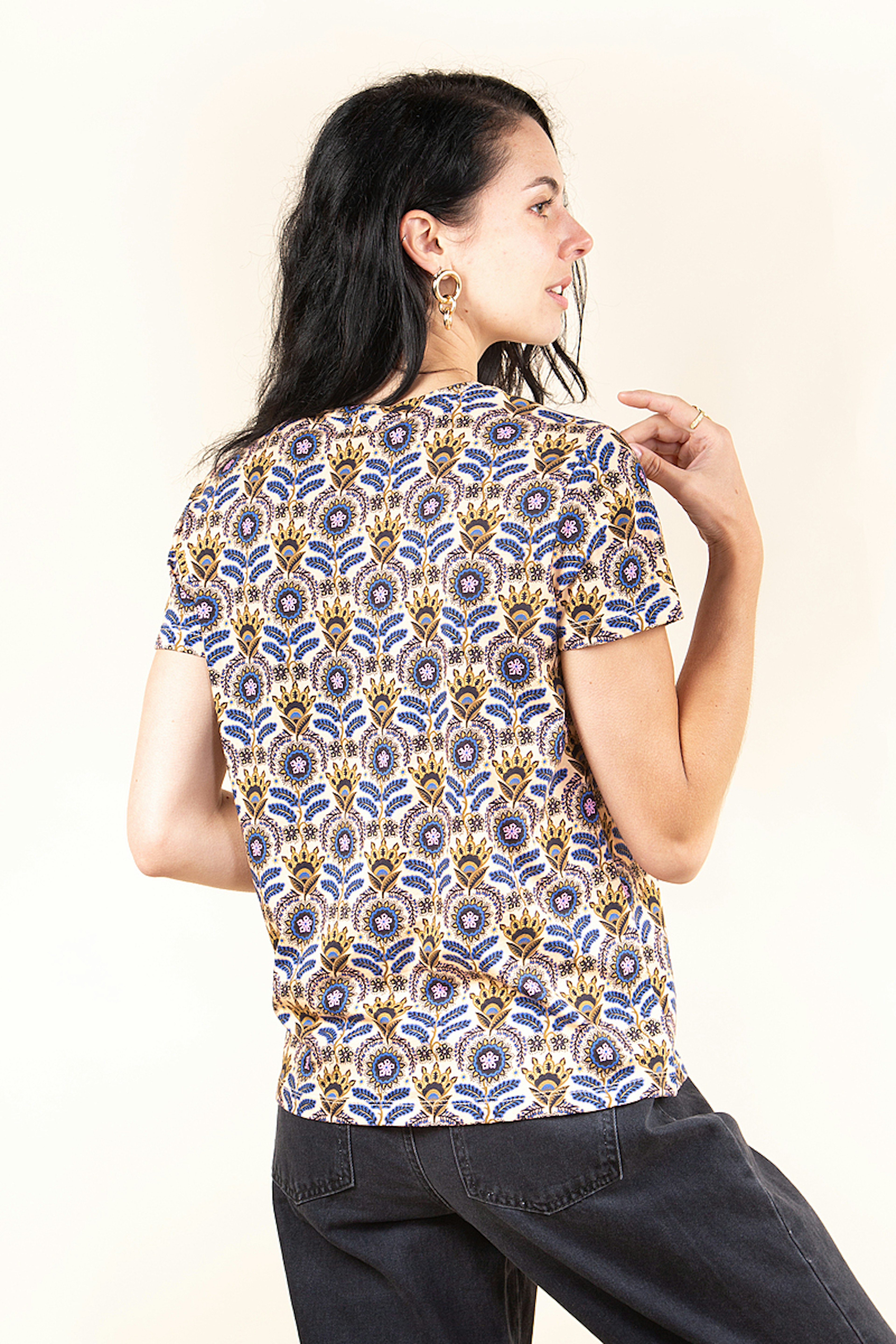 On adore ce haut de chez Scotch & Soda pour son imprimรฉ colorรฉ au style affirmรฉ. โข Tissu en coton bio โข Imprimรฉ colorรฉ ethnique โข Manches courtes