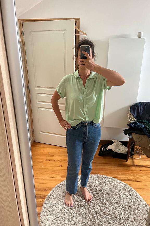 โJe met 5 รฉtoiles parceque vraiment cette chemise est tellement agrรฉable ร porter par temps chaud ! Elle est fluide lรฉgรจre et trรจs belle. Seul bรฉmol elle froisse tellement vite!โ