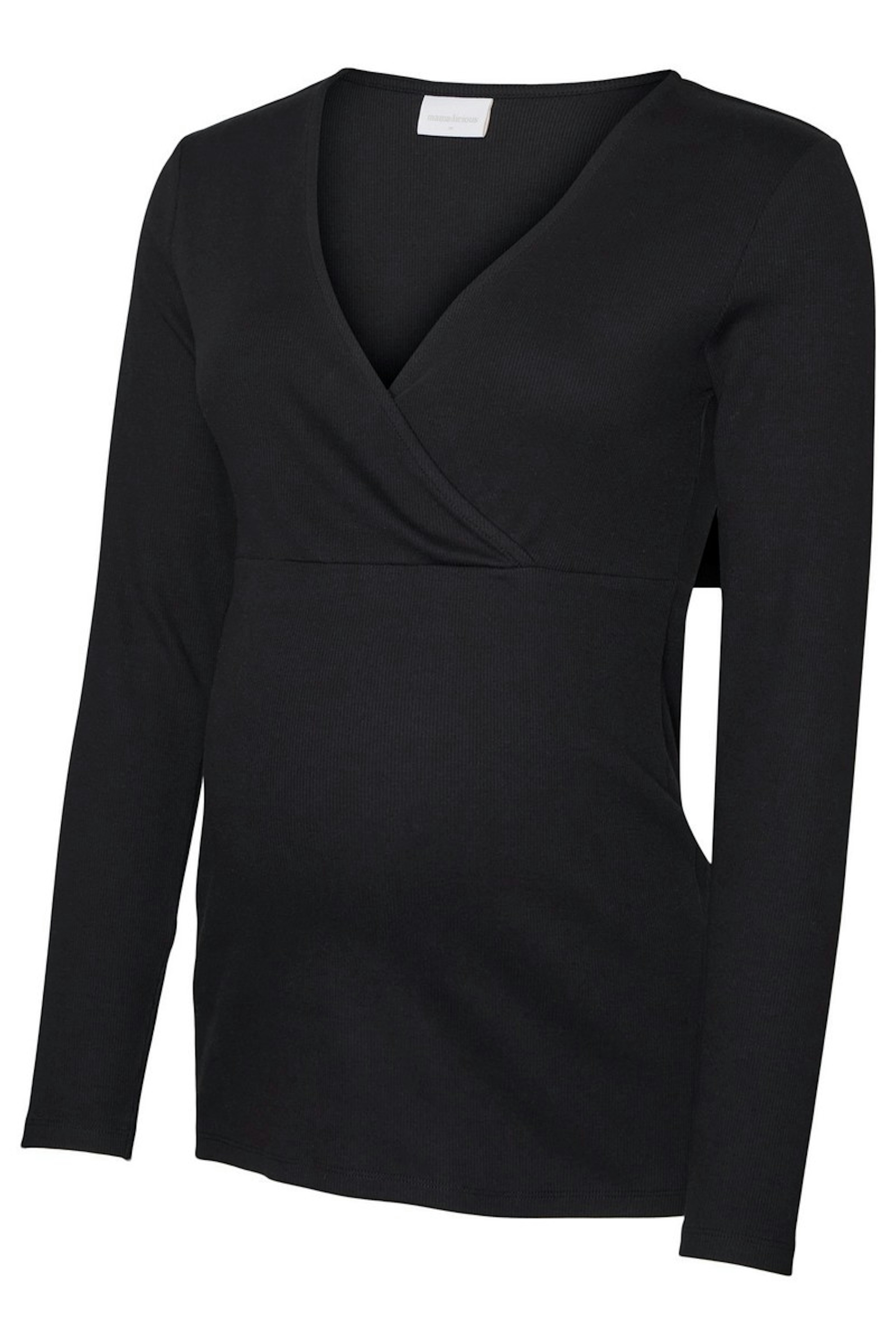 โข Haut noir de grossesse ร manches longues โข Compatible allaitement โข Col V