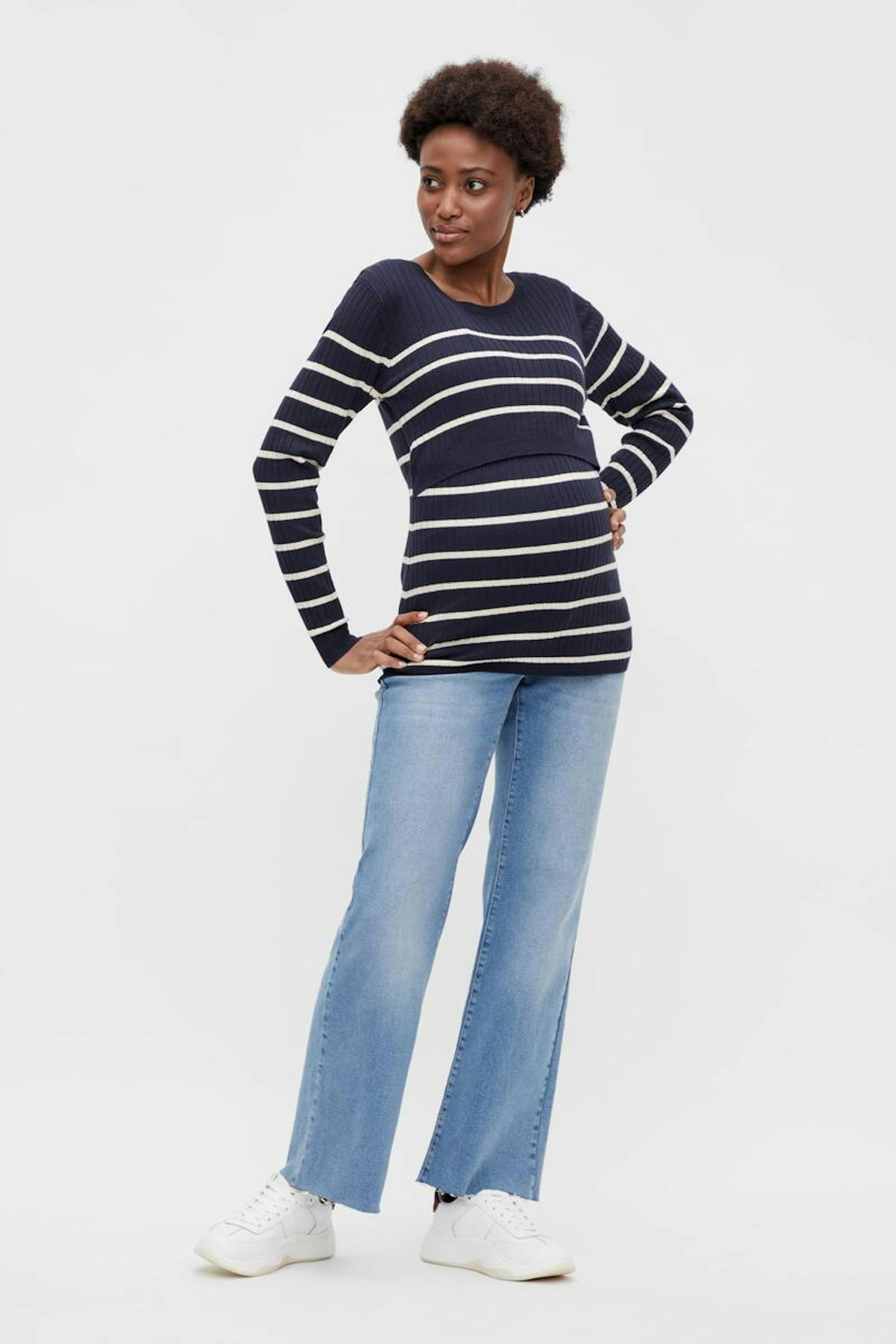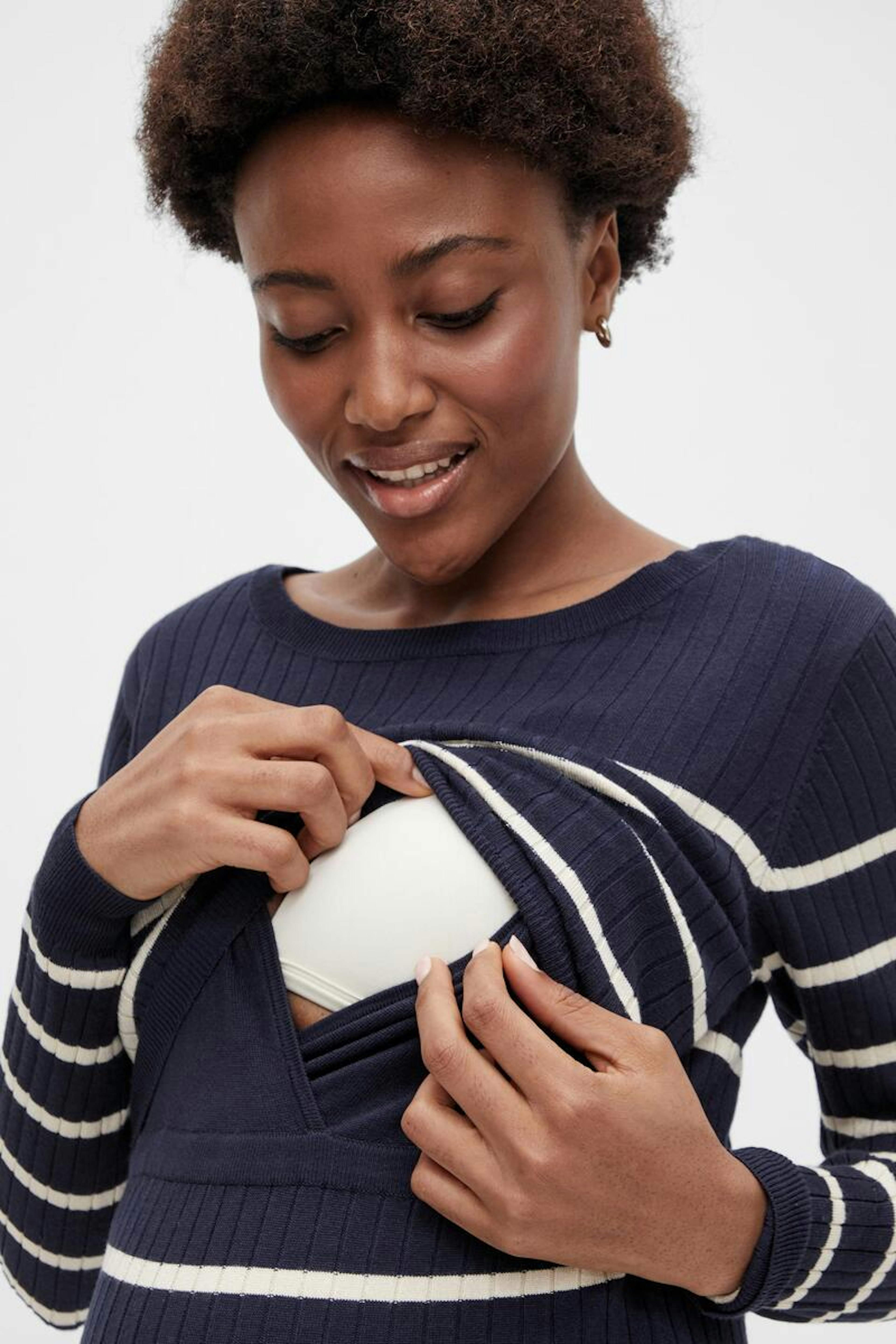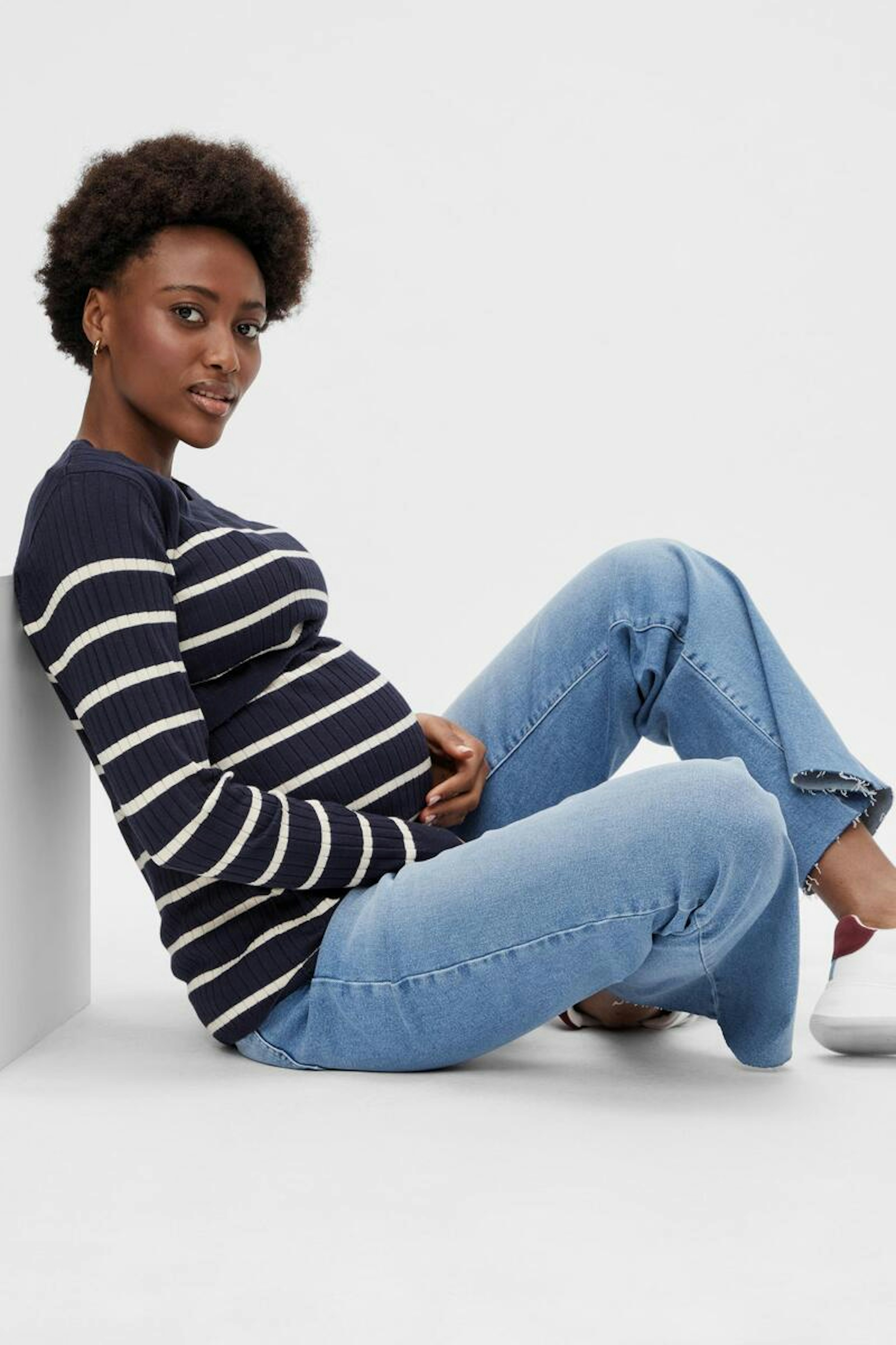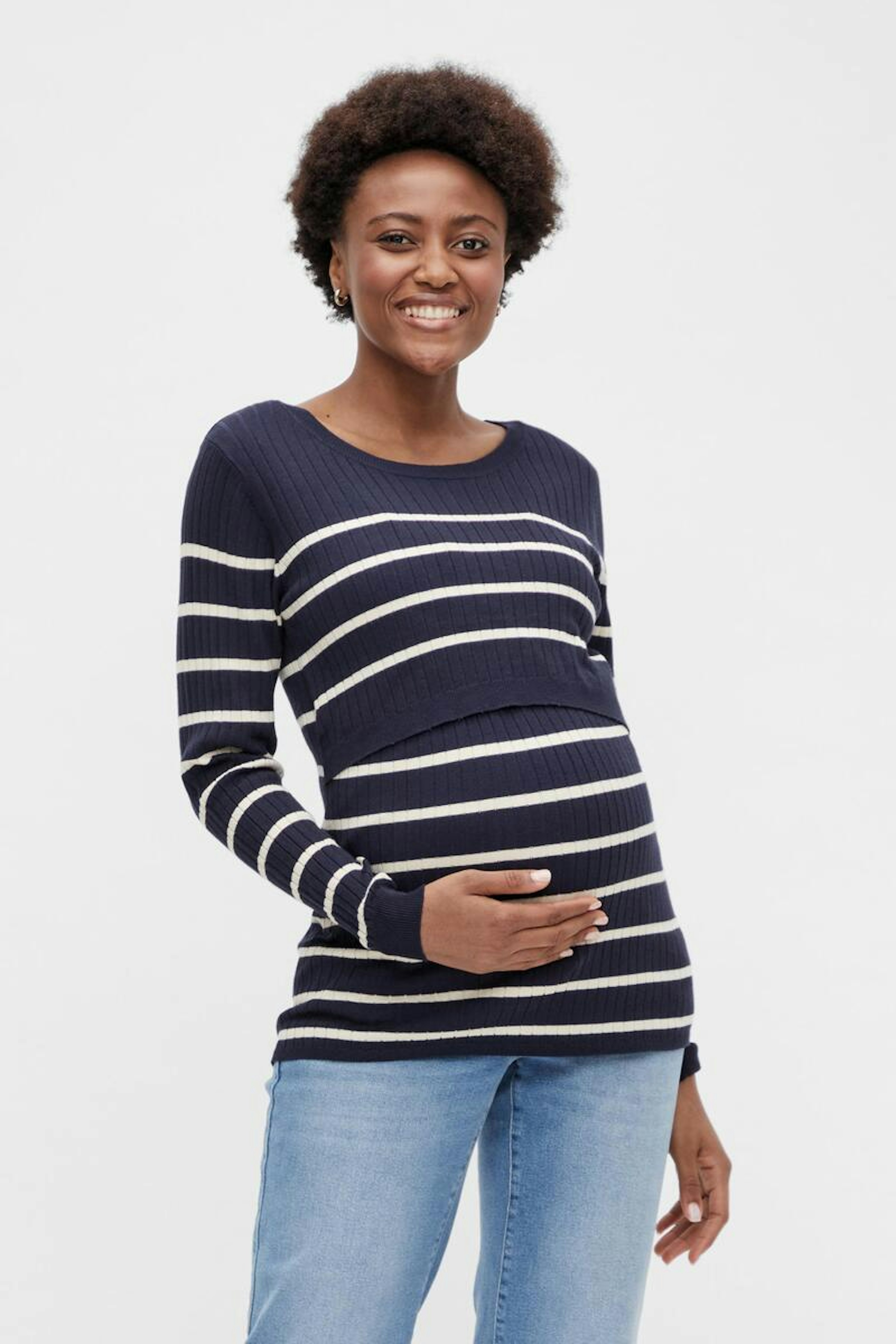 โข Top de grossesse manches longues โข Style mariniรจre noire et blanche โข Allaitement facile grรขce ร sa partie amovible โข Viscose ecovero