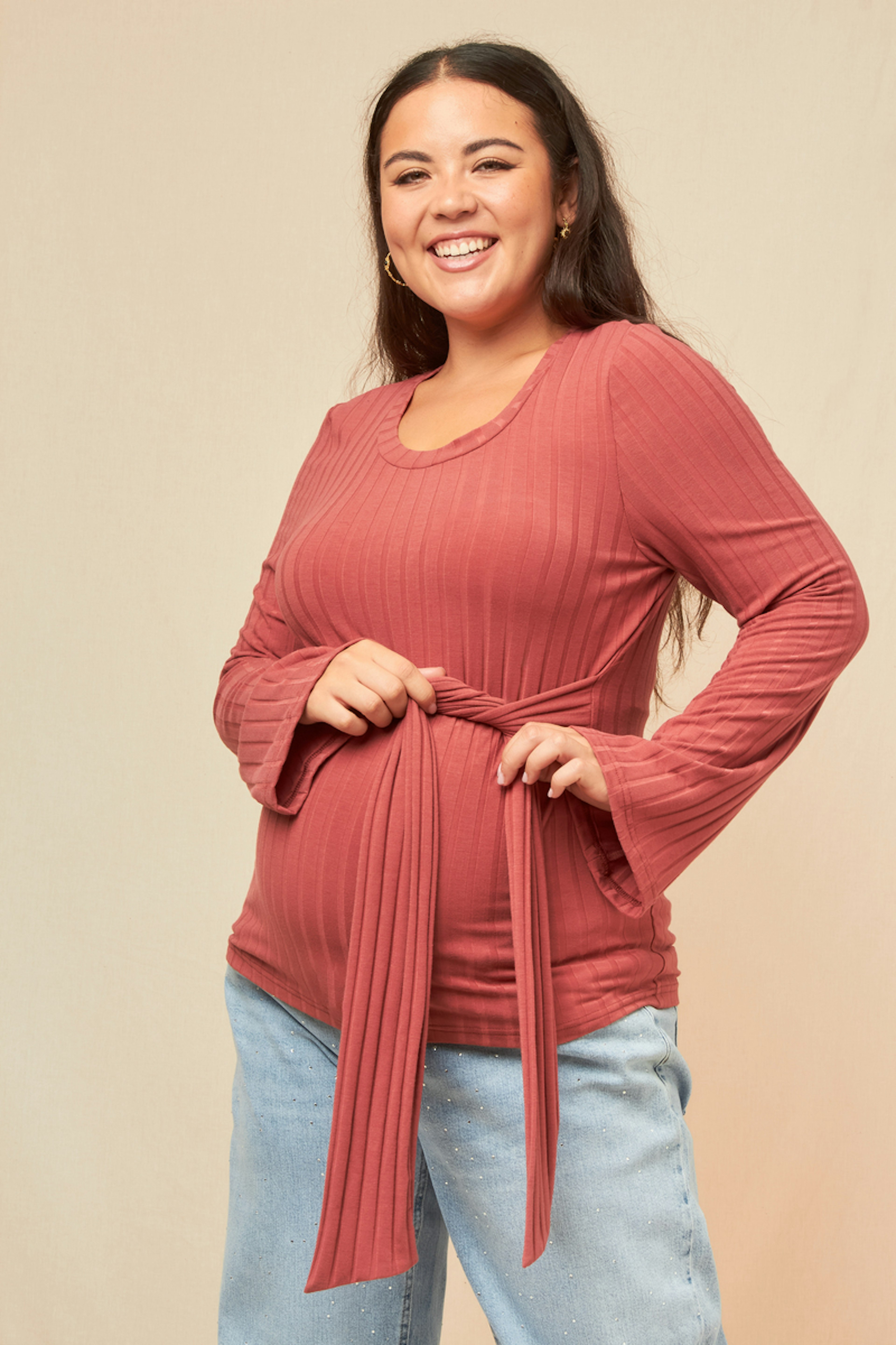 Associez ce haut ร un jean brut et des bottines pour un look chic et confortable, parfait en toute saison. โข Haut ร manches longues โข Coupe ajustรฉe avec ceinture taille โข Encolure en V flatteuse โข Texturรฉ ร cรดtes โข Conรงu pour la maternitรฉ