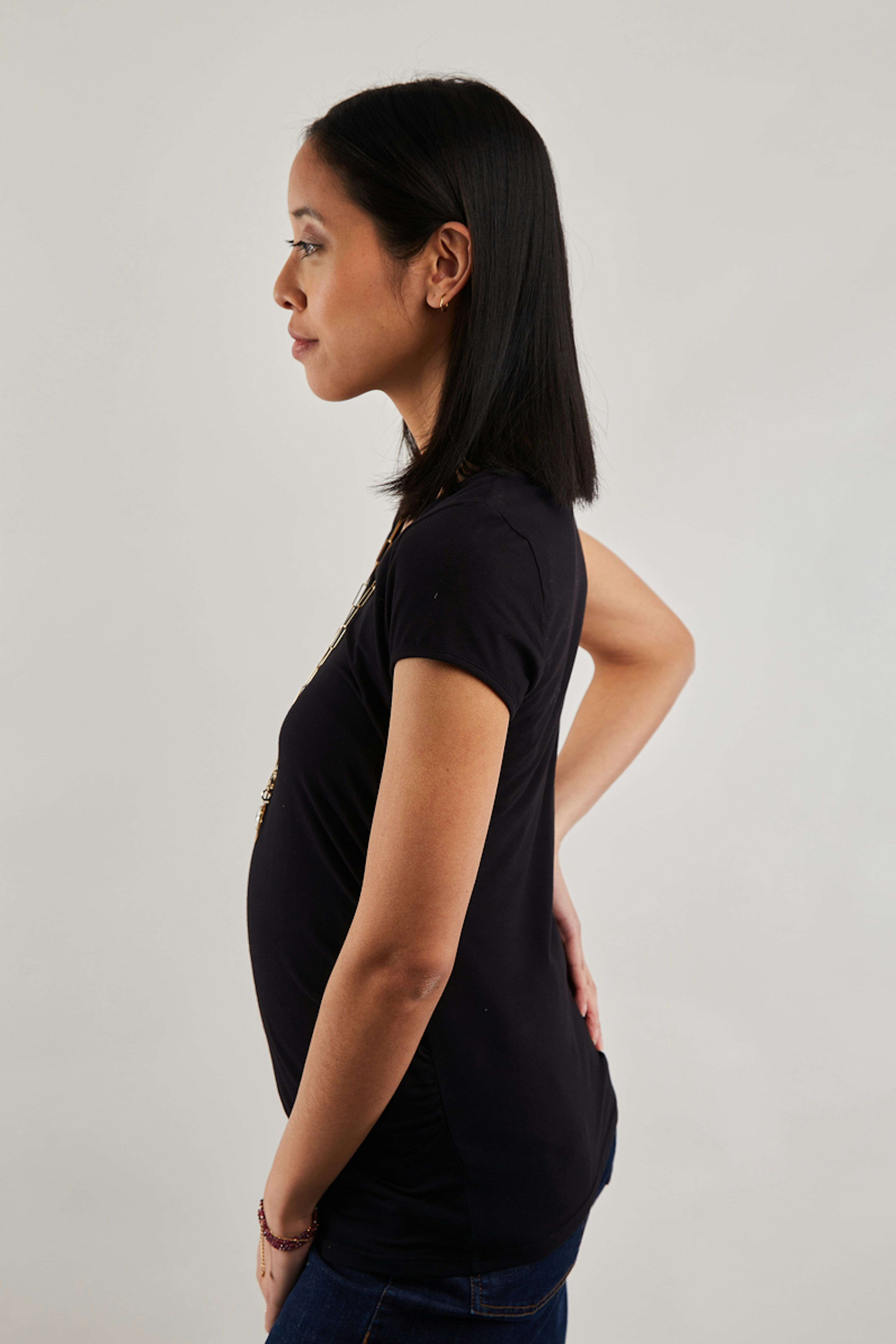 โข Tee-shirt de maternitรฉ Raguel โข Coupe prรจs du corps โข Manches courtes โข Col rond โข Fronces sur les cรดtรฉs pour suivre l'รฉvolution de vos nouvelles courbes de future maman โข Sa tonalitรฉ et sa simplicitรฉ vous autorisent toutes les associations