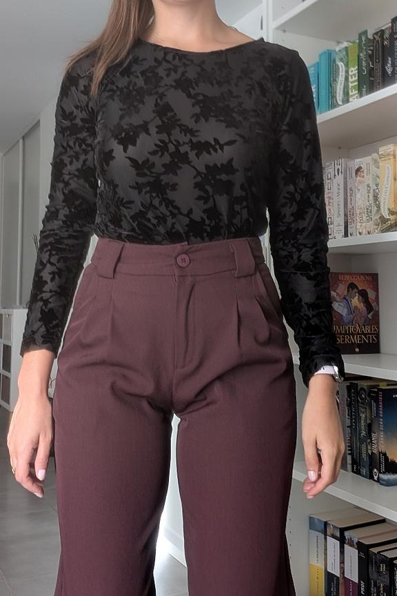 Optez pour un look chic en associant ce haut avec un pantalon taille haute et des talons élégants. Idéal pour les soirées d'hiver. • Haut transparent • Manches longues • Encolure ronde • Imprimé floral • Effet velours