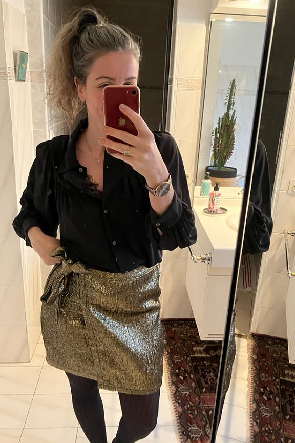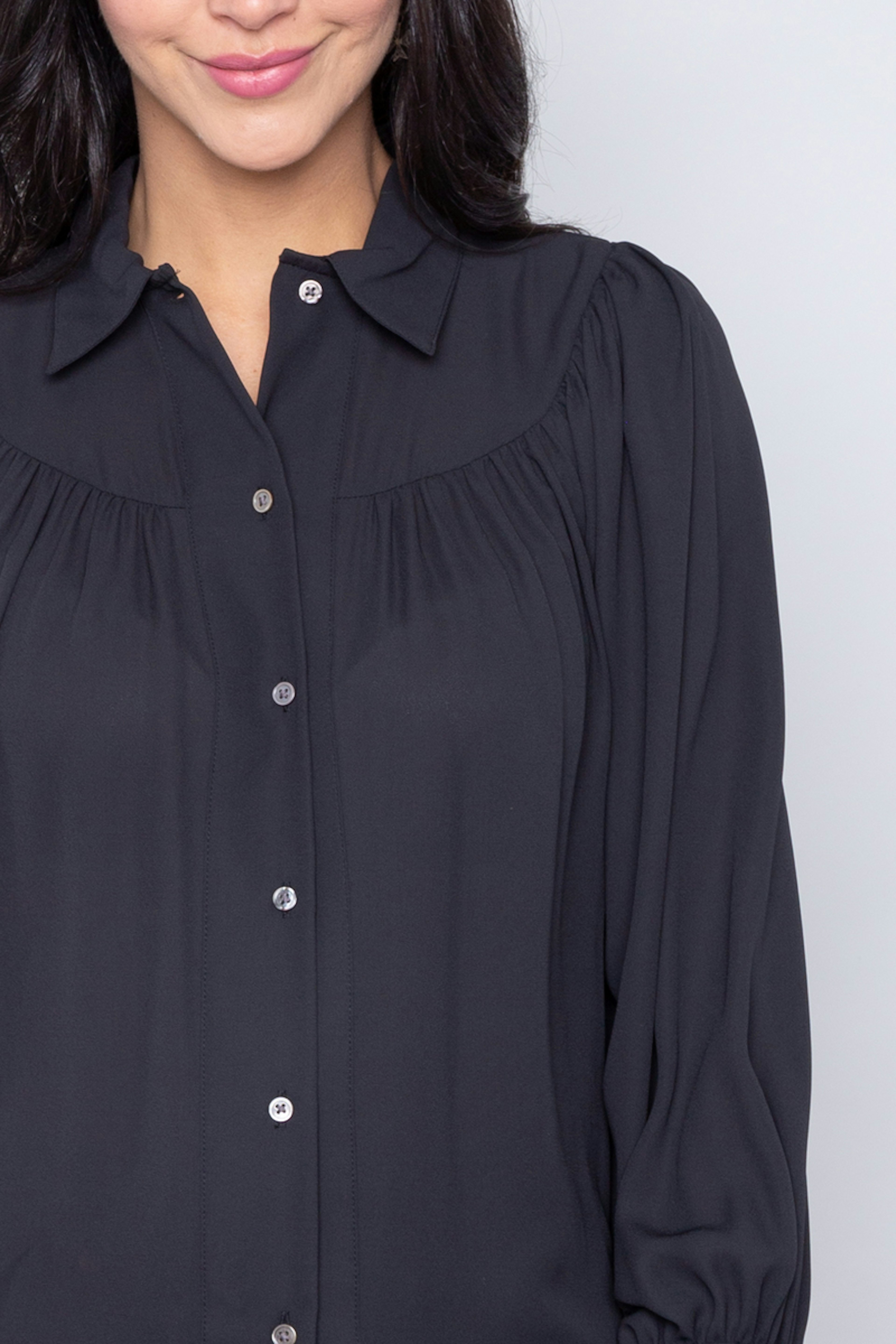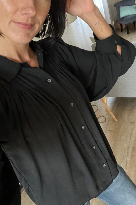 โข Chemise ร manches longues noire โข Manches ballons โข Matiรจre fluide vaporeuse โข Col chemise โข Patte de boutonnage
