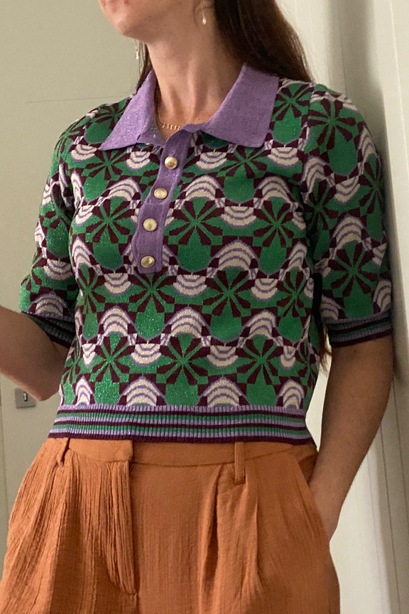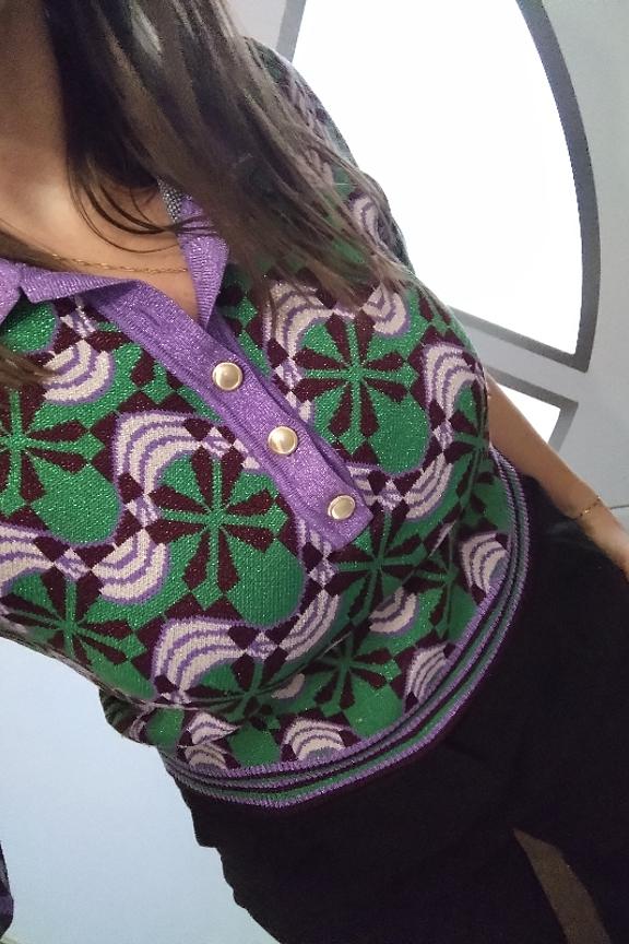 Sublimez votre quotidien avec ce haut Palmer de Suncoo, parfait pour une allure chic et pรฉtillante en toute saison. Associez-le ร un pantalon taille haute et des talons aiguilles pour un effet wow ! โข Top en maille fine pailletรฉ โข Manches courtes รฉlรฉgantes โข Motif abstrait colorรฉ