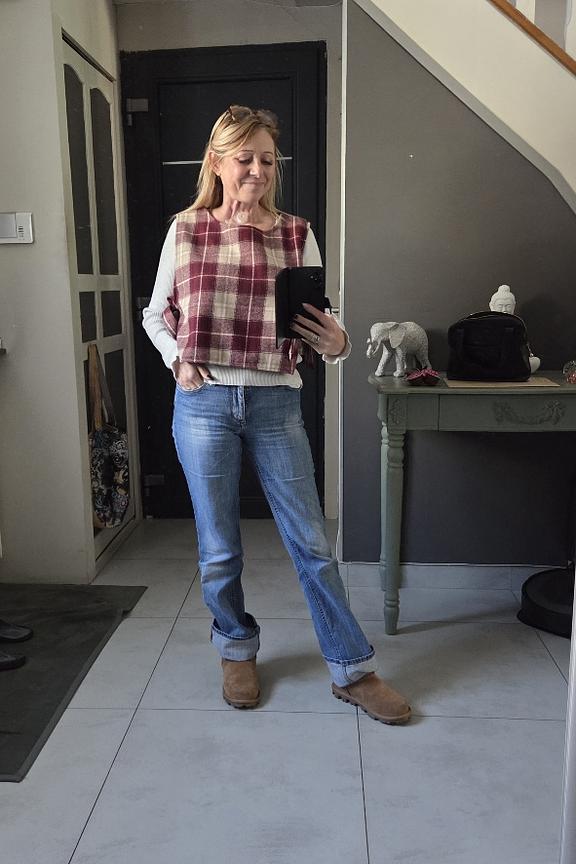 Associez ce top à carreaux avec un jean taille haute et des bottines pour un style intemporel en hiver. Ajoutez une écharpe douillette pour plus de chaleur. • Haut à carreaux marqués • Coupe droite • Col rond discret • Manches longues ajustées • Motif à carreaux