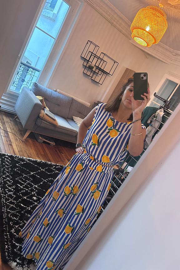 “Parfait pour l’été. Très bel imprimé et confortable…J’ai failli le garder ! 😉”