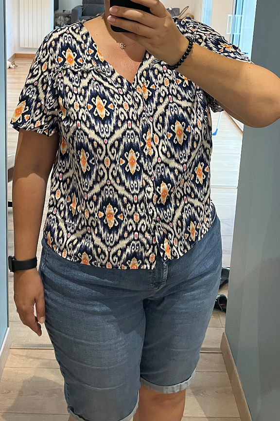 โ€ข Top col V โ€ข Imprimรฉ ethnique โ€ข Matiรจre fluide