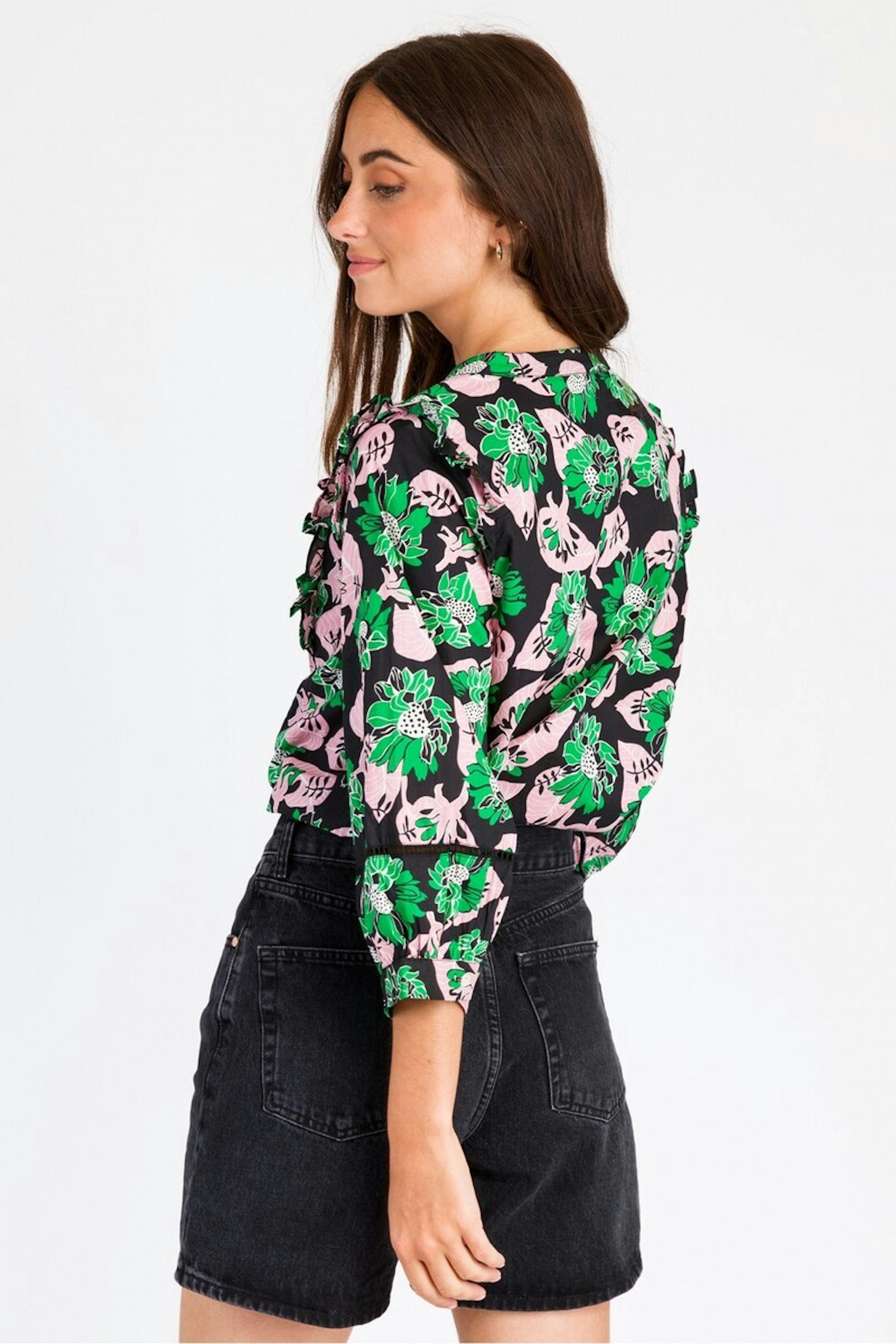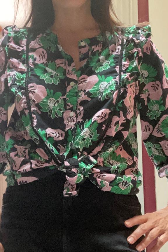 โข La blouse SOLENA en coton imprimรฉ et frais qui respire les beaux jours โข On note ses petits volants au niveau des emmanchures et ses dรฉtails en dentelle qui apporte ร la blouse une note fรฉminine โข Tissu lรฉger en coton โข Coupe lรฉgรจrement ample โข Longueur hanches โข Col mao boutonnรฉ โข Manches 3/4 lรฉgรจrement resserrรฉes โข Dรฉtails volantรฉs aux emmanchures โข Bandes en dentelle โข Finitions surpiquรฉes