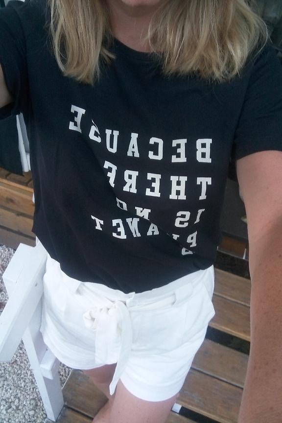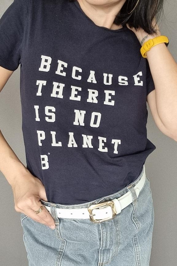 Un classique moderne pour toutes les saisons, ce T-shirt est parfait avec un jean et des baskets pour un look dรฉcontractรฉ et conscient. โข T-shirt en coton bio โข Col rond classique โข Manches courtes โข Imprimรฉ "Because there is no Planet B" โข Coupe droite