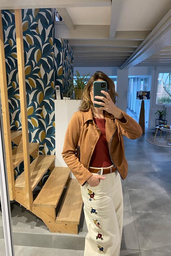 “très très joli et agréable à porter. Il était un peu grand pour moi, particulièrement les manches.”