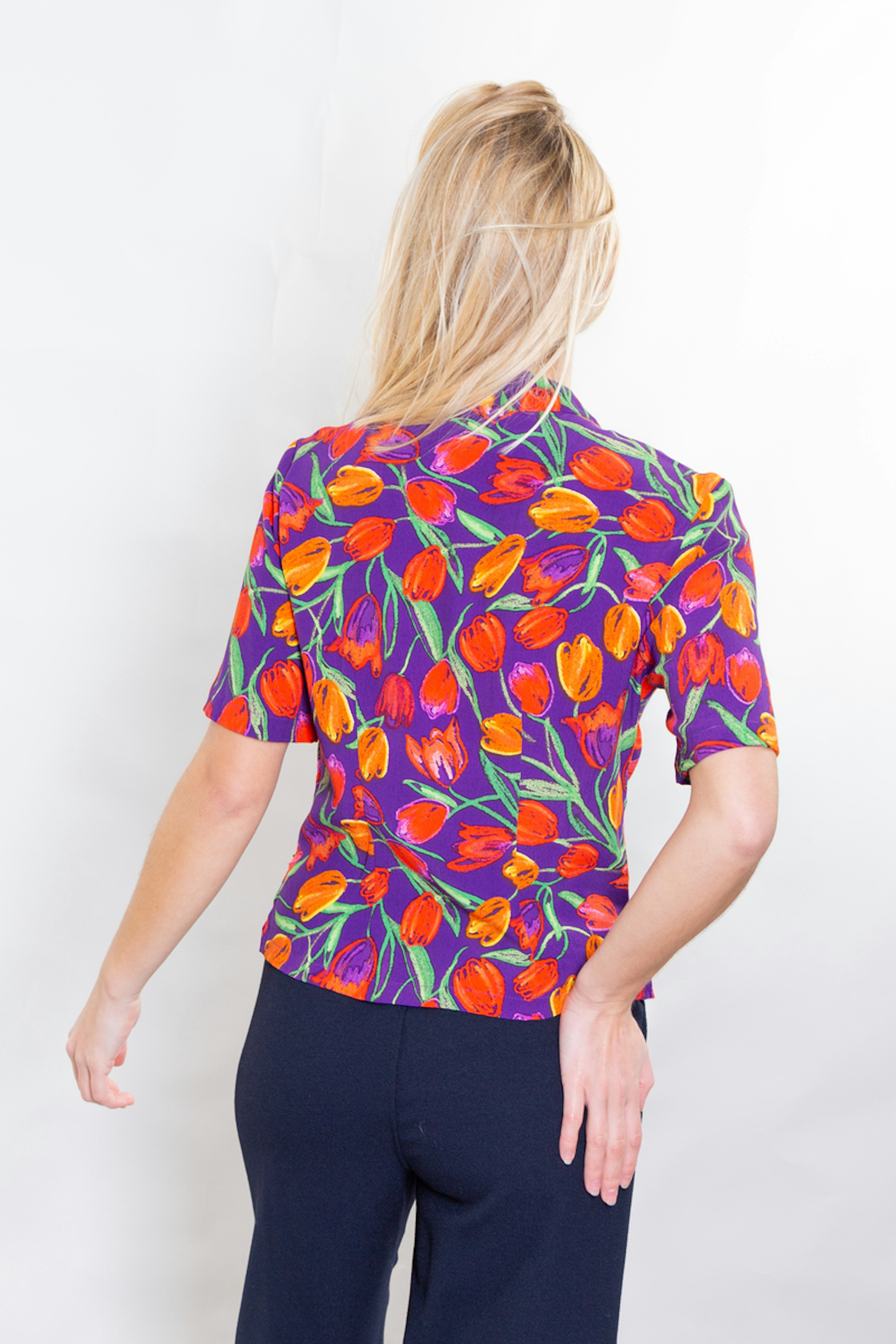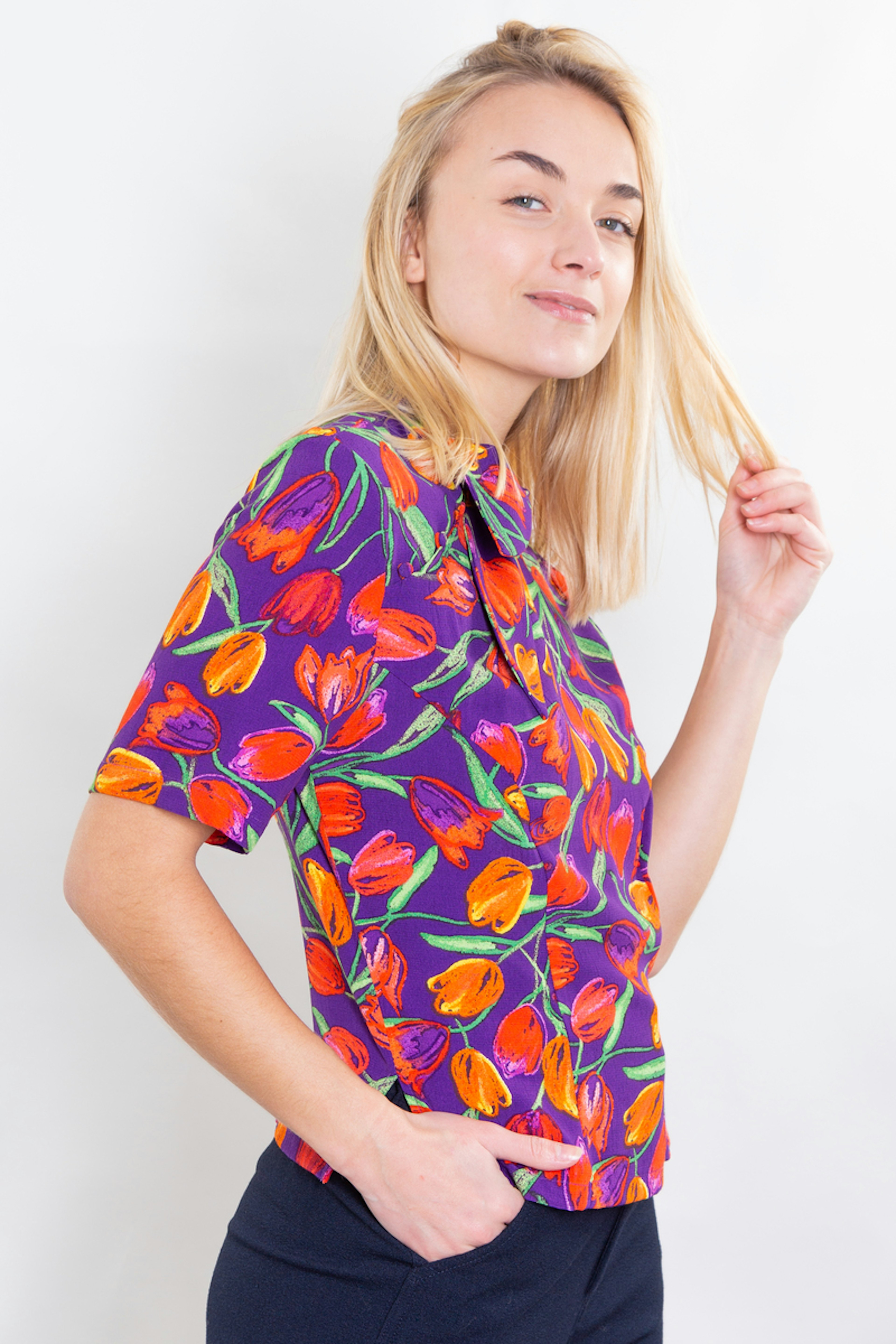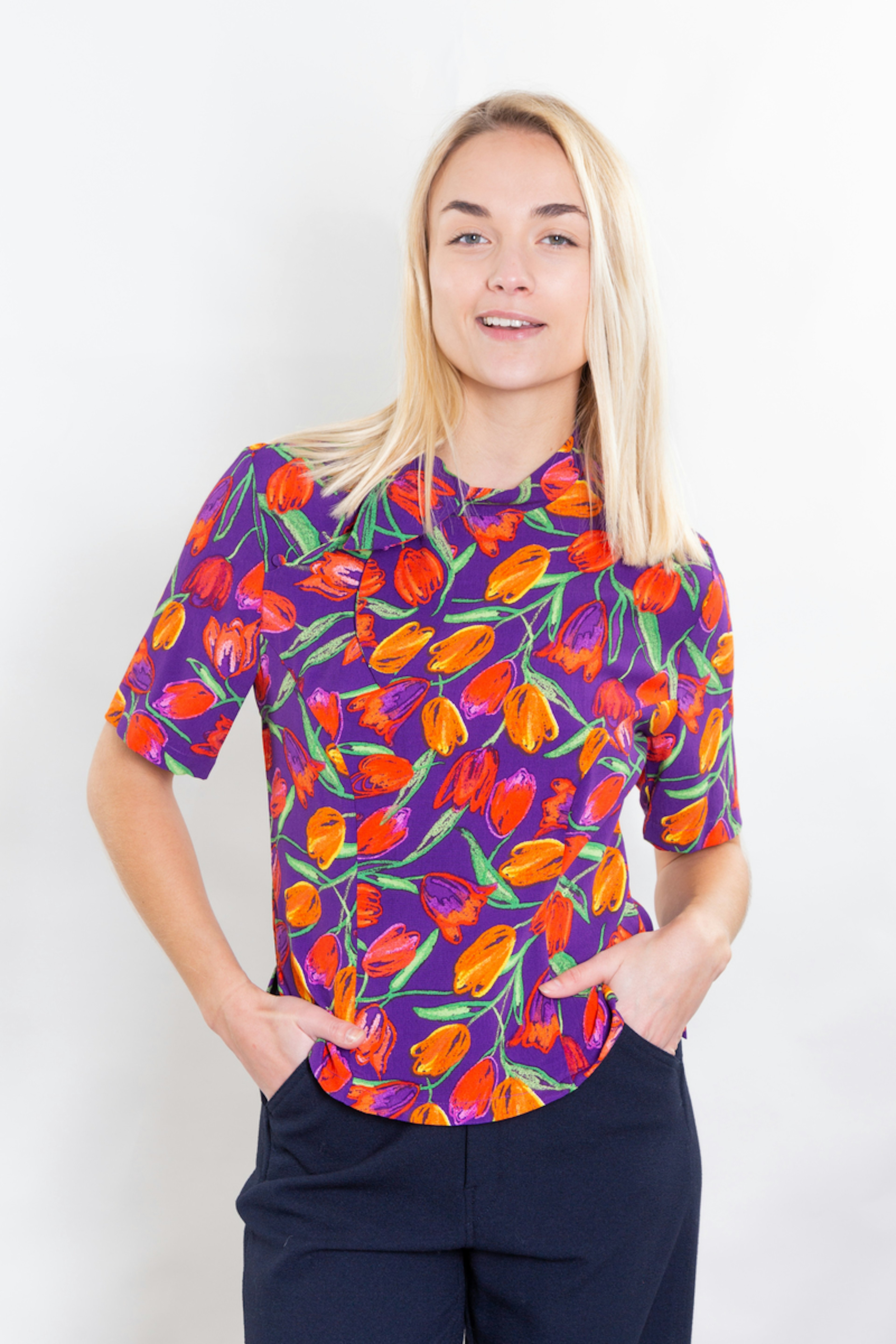 Dรฉcouvrez le top Sylvia et son imprimรฉ tulipes exclusif ! โข Imprimรฉ exclusif โข Col ร nouer et zip sur le cรดtรฉ โข 100% Viscose OEKO-TEXยฎ โข Fabriquรฉ en Roumanie