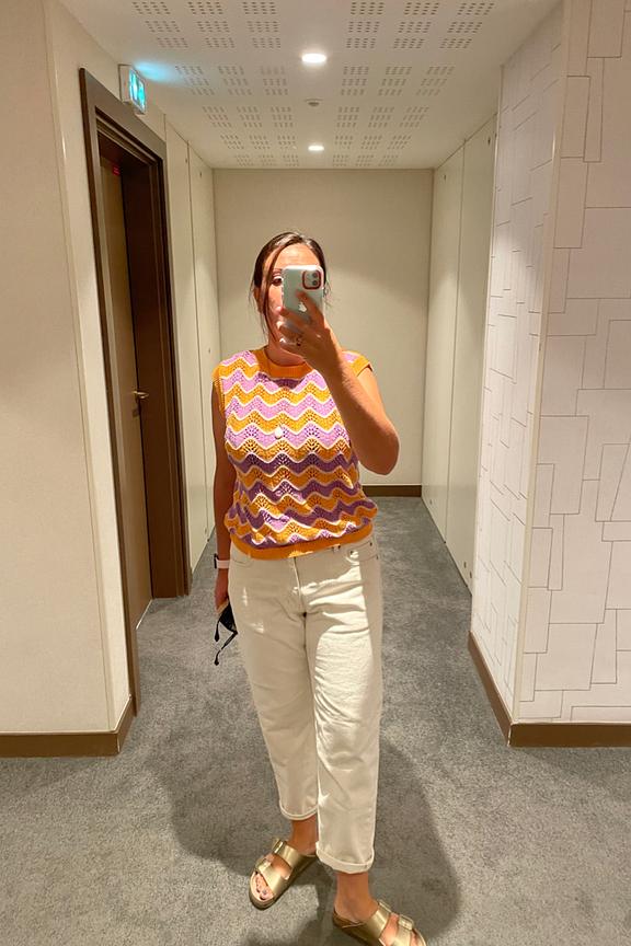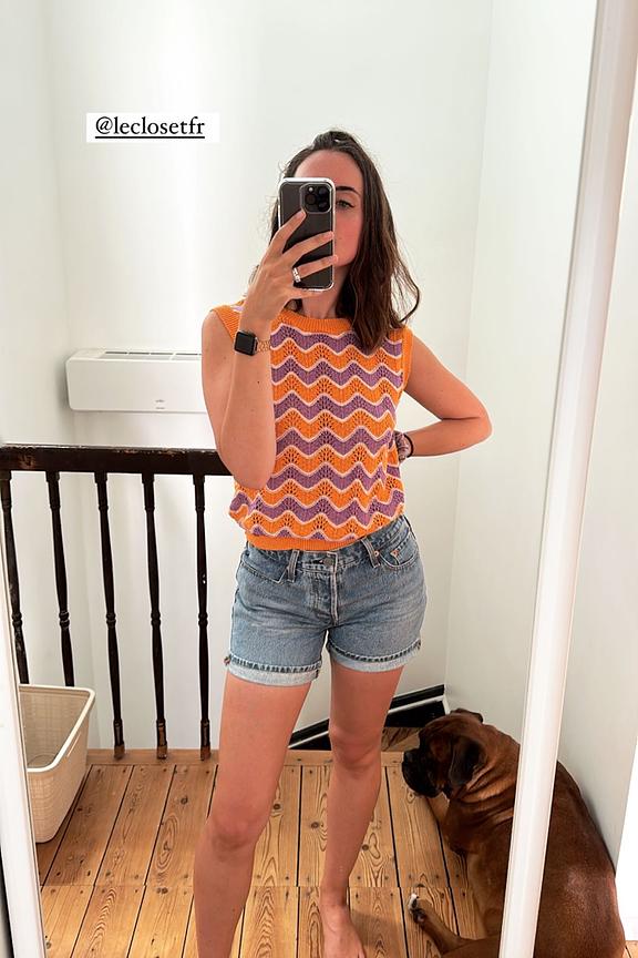โข Top Tamisha โข Pull sans manches โข Col rond โข Motif imprimรฉ gรฉomรฉtrique