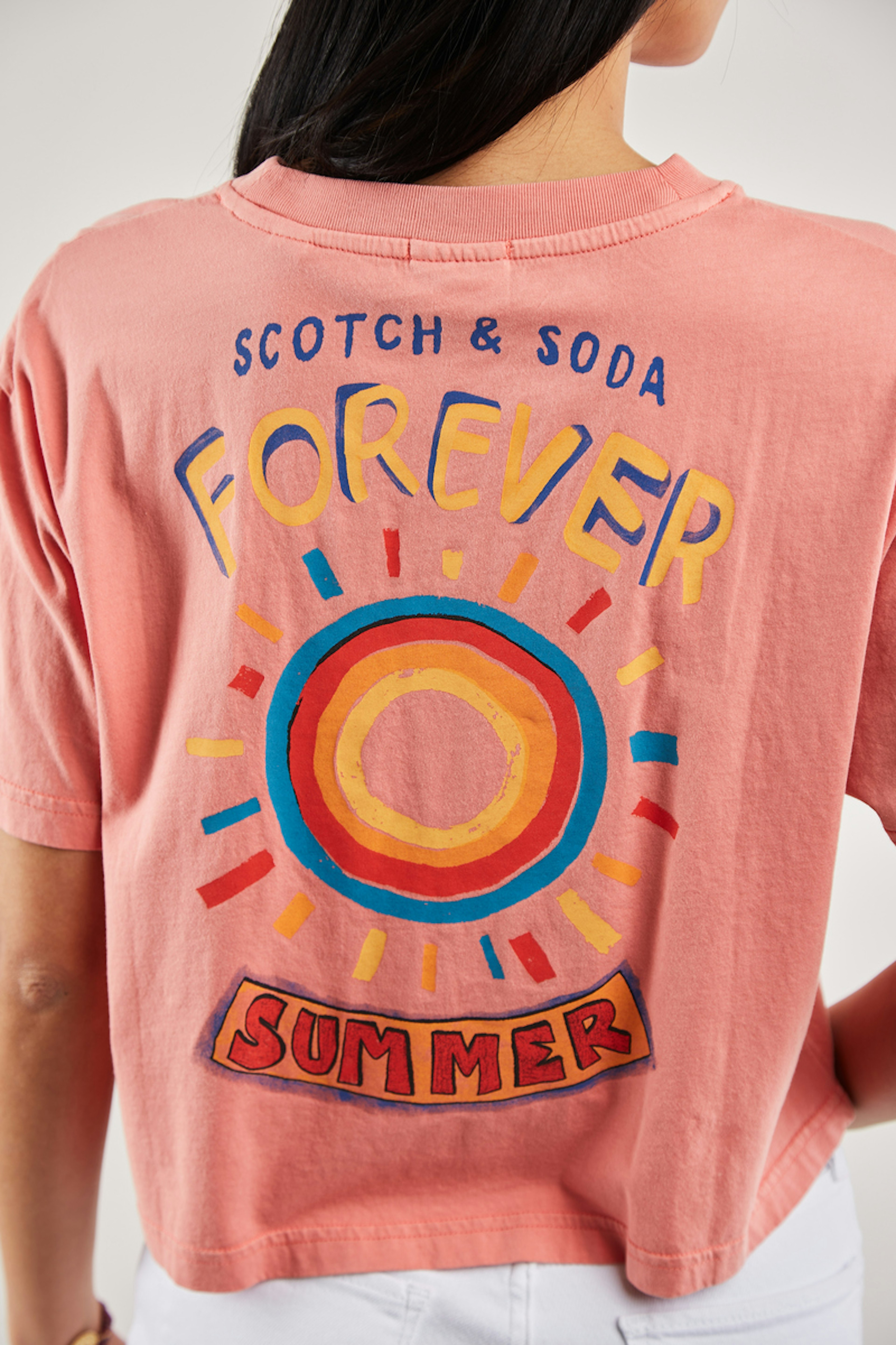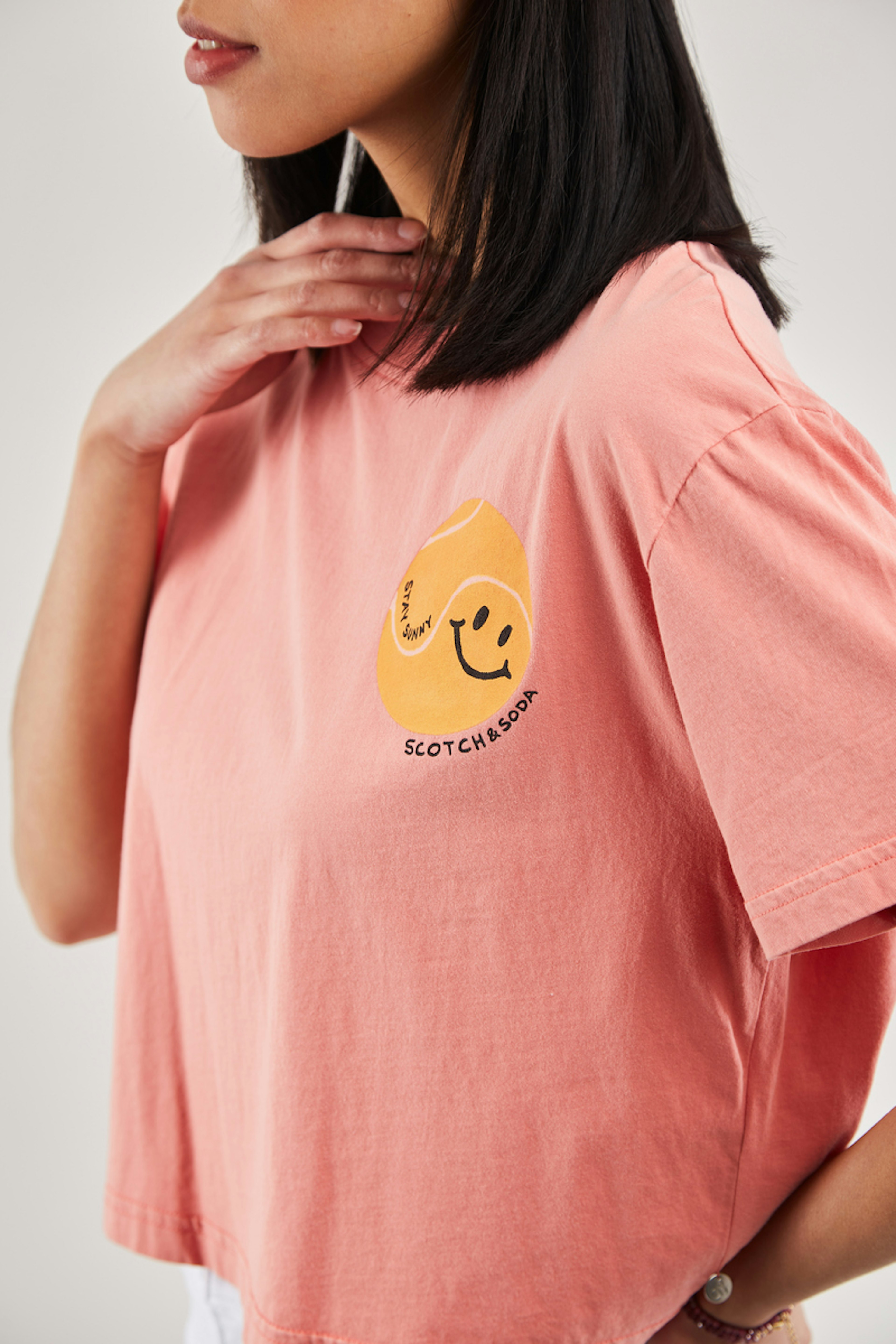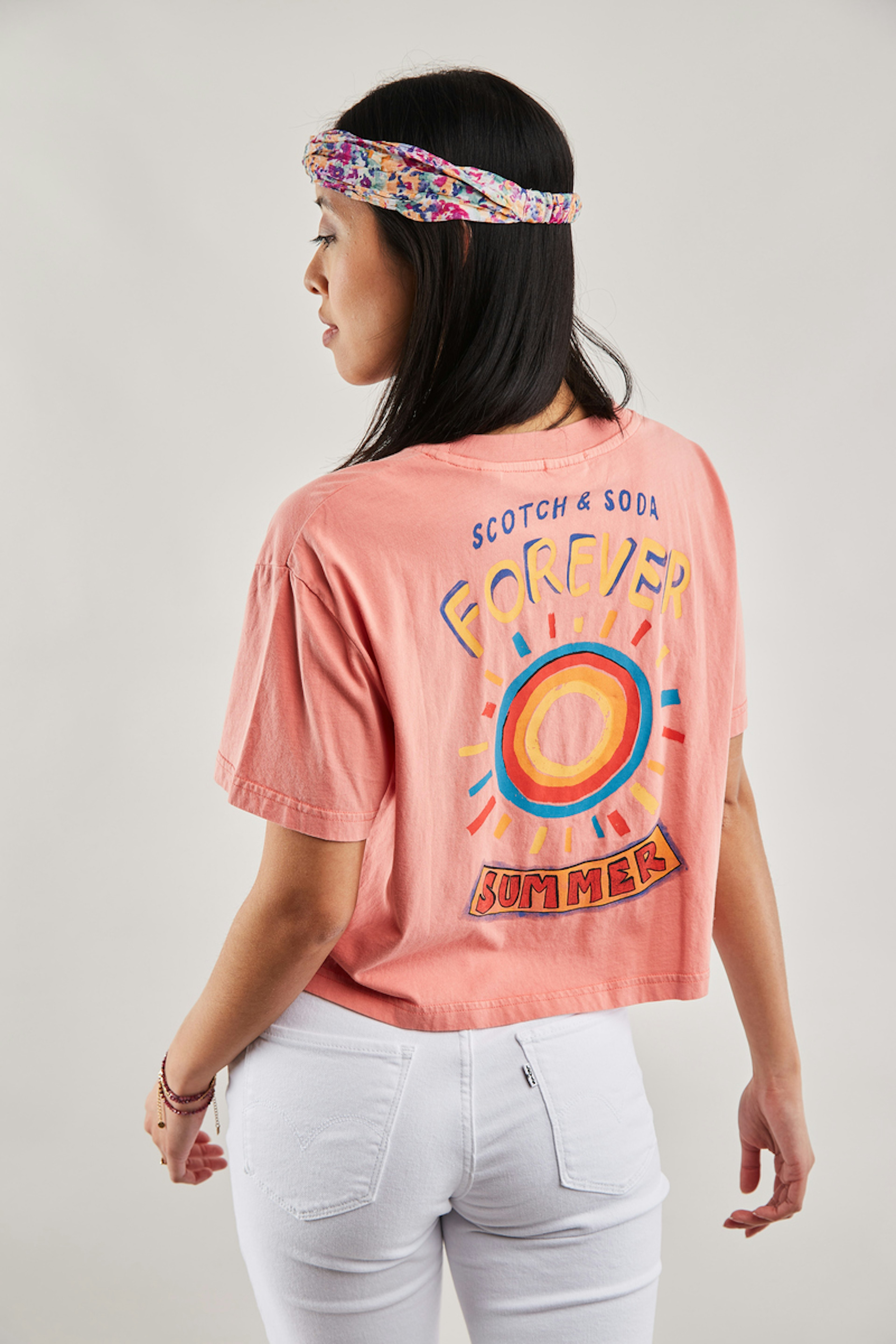 โ€ข T-shirt femme โ€ข Manches courtes โ€ข Motif graphique imprimรฉ โ€ข Crop-top