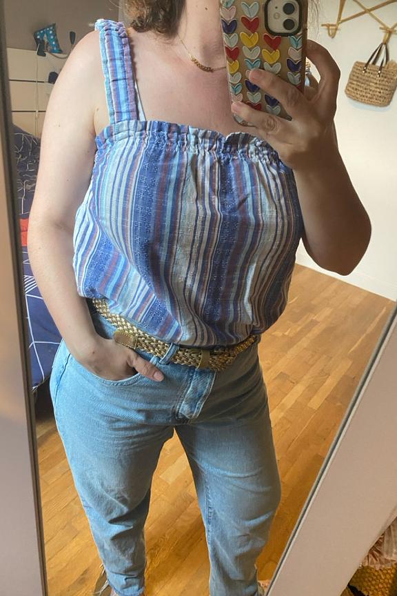 โข Top Thyra โข Col carrรฉ โข Sans manches โข Dรฉtails : Smock โข Motif ร rayures