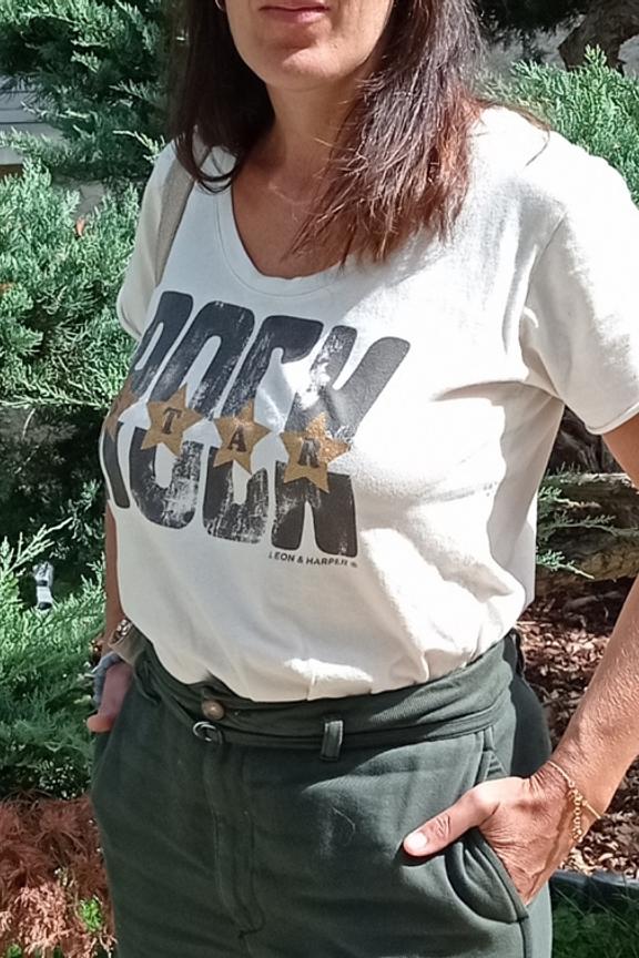 โข T-shirt manches courtes โข Col rond profond โข Print craquelรฉ noir et or โข Coupe droite โข Composition 100% coton biologique
