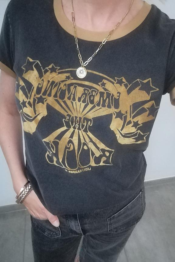 โข T-shirt manches courtes โข Col rond โข Coupe droite โข Imrpimรฉ "Embracing the rock"