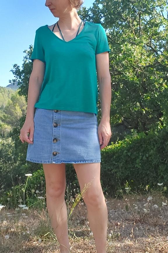 โข Haut Vinoel - Vila โข Col en V โข Couleur unie โข Manches courtes