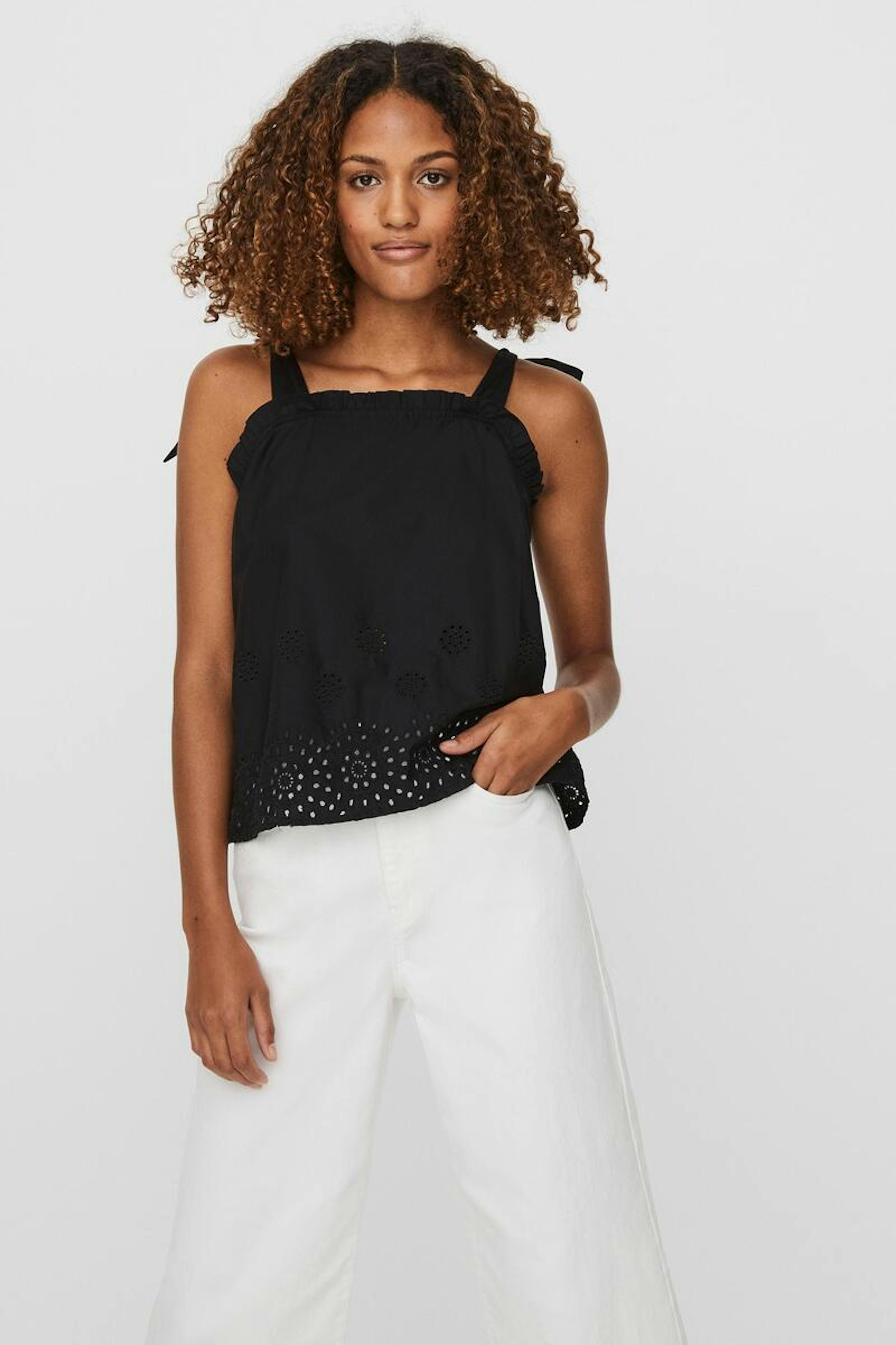 On craque pour ce haut romantique noir en coton bio. Ses bretelles se nouent aux รฉpaules pour un rendu trรจs fรฉminin. A porter avec un short en jean tout l'รฉtรฉ ! Fondรฉe en 1987, VERO MODA est une marque danoise qui propose des looks accessibles, mode et indispensables ร toute garde-robe. On a sรฉlectionnรฉ chez eux vos intemporels modernes et fรฉminins.