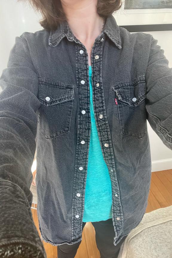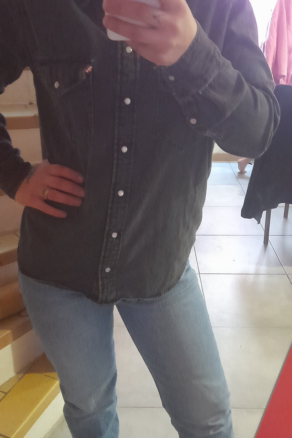 Une interprรฉtation minimaliste de la Western Shirt emblรฉmatique. โข Chemise en Denim noir โข Non extensible โข Col ร pointes, Patte ร boutons-pression sur lโavant โข Manches longues โข Poches ร rabat