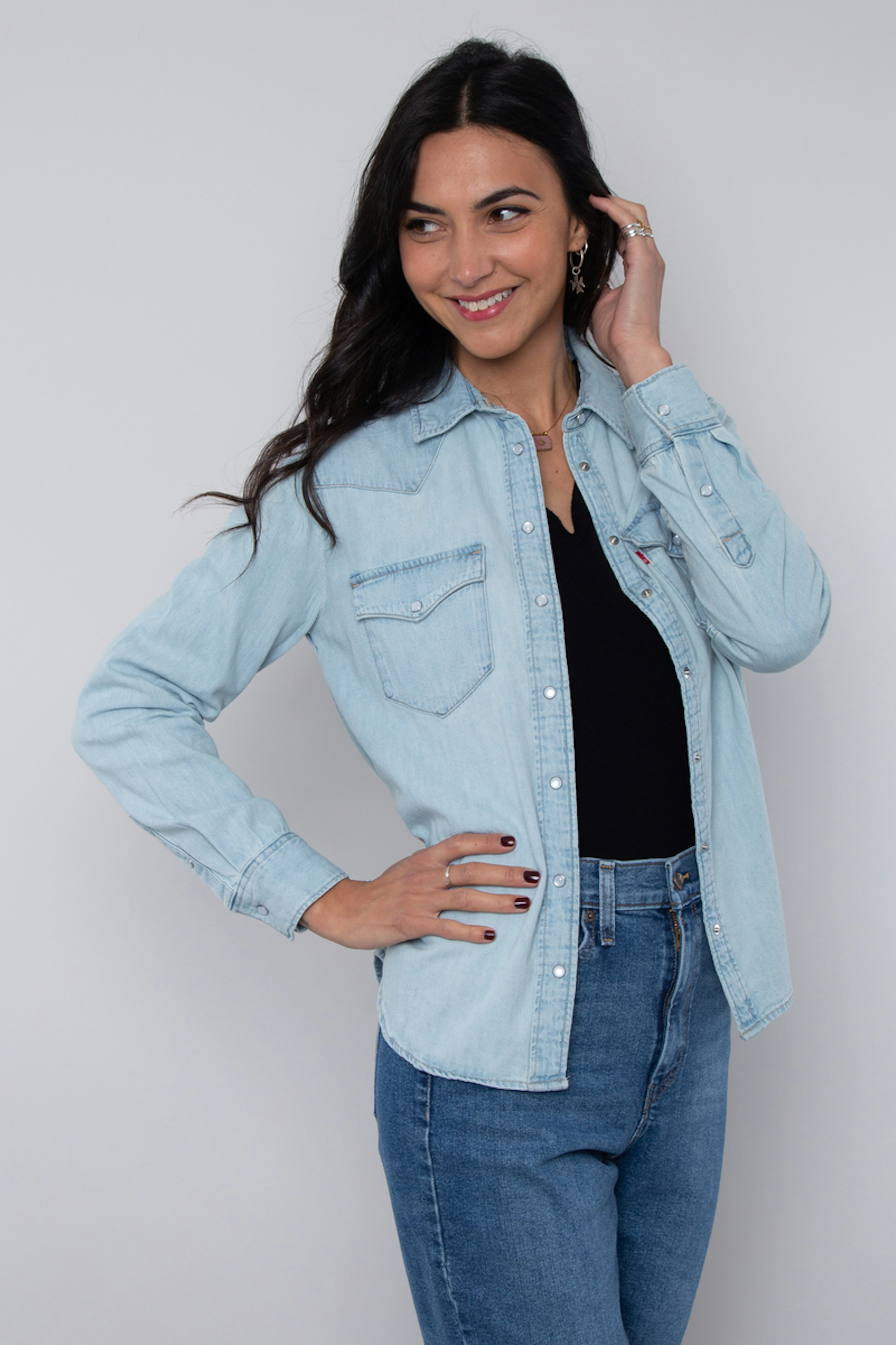 Un indispensable de la gamme Levi'sยฎ : la chemise en jean. Ce modรจle au dรฉlavage intemporel deviendra vite un basique de votre garde-robe. โข Chemise en jean bleu clair ร manches longues โข Boutons-pression sur le devant โข Empiรจcement style western au dos โข Conรงu en coton certifiรฉ BCI โข A porter ouverte sur un t-shirt ou fermรฉe dans un pantalon chic