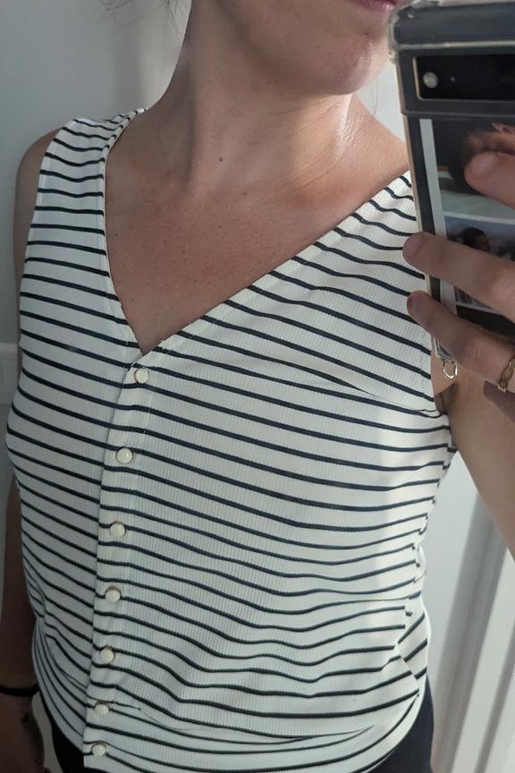 โข Haut Zenobia โข Dรฉbardeur blanc ร rayures noires โข Boutons ร l'avant