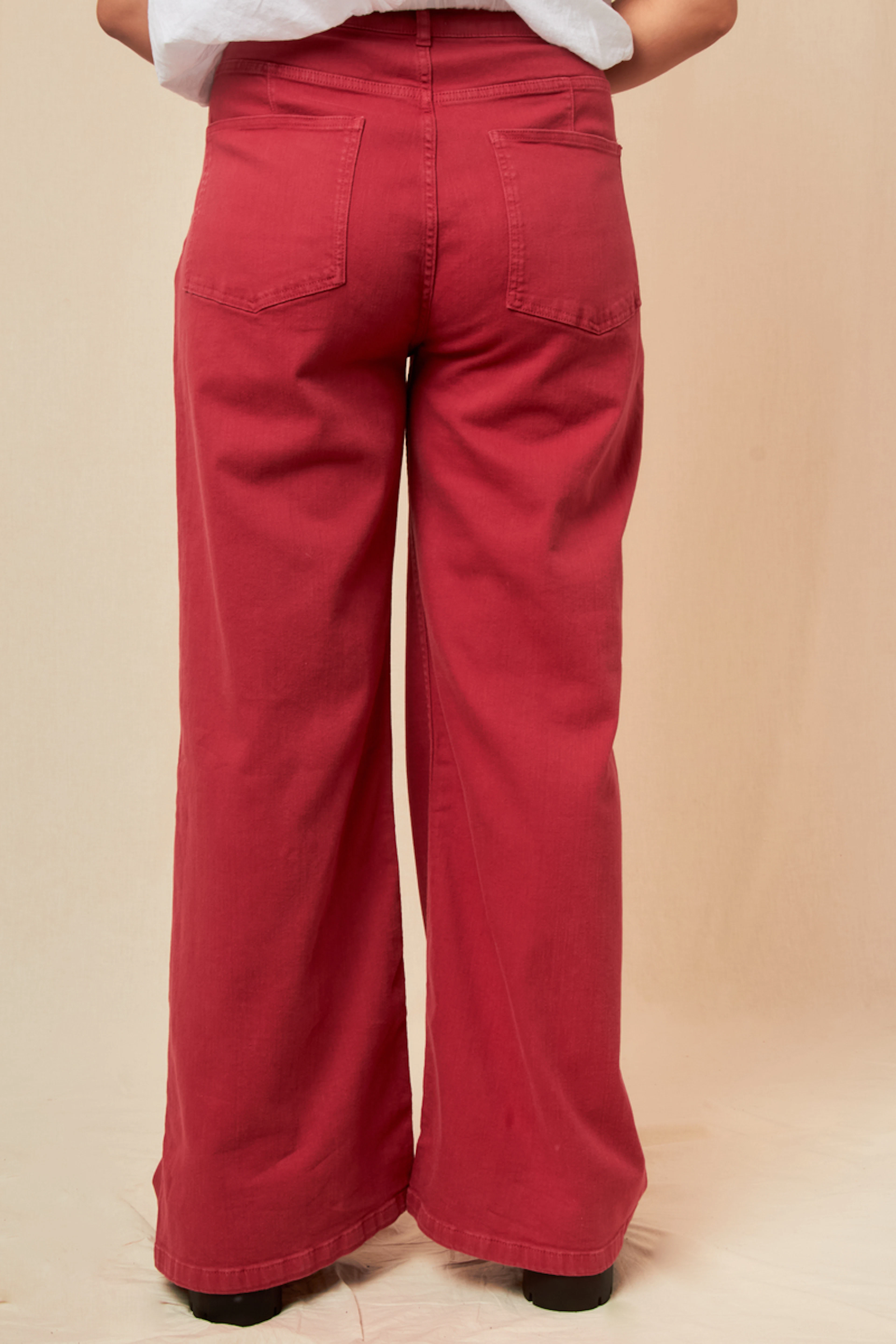 Associez ce jeans à une blouse légère et à des sandales compensées pour un look estival audacieux. • Jeans wide leg en coton • Taille haute flatteuse • Jambes larges et amples • Fermeture classique à boutons • Coloris frappant