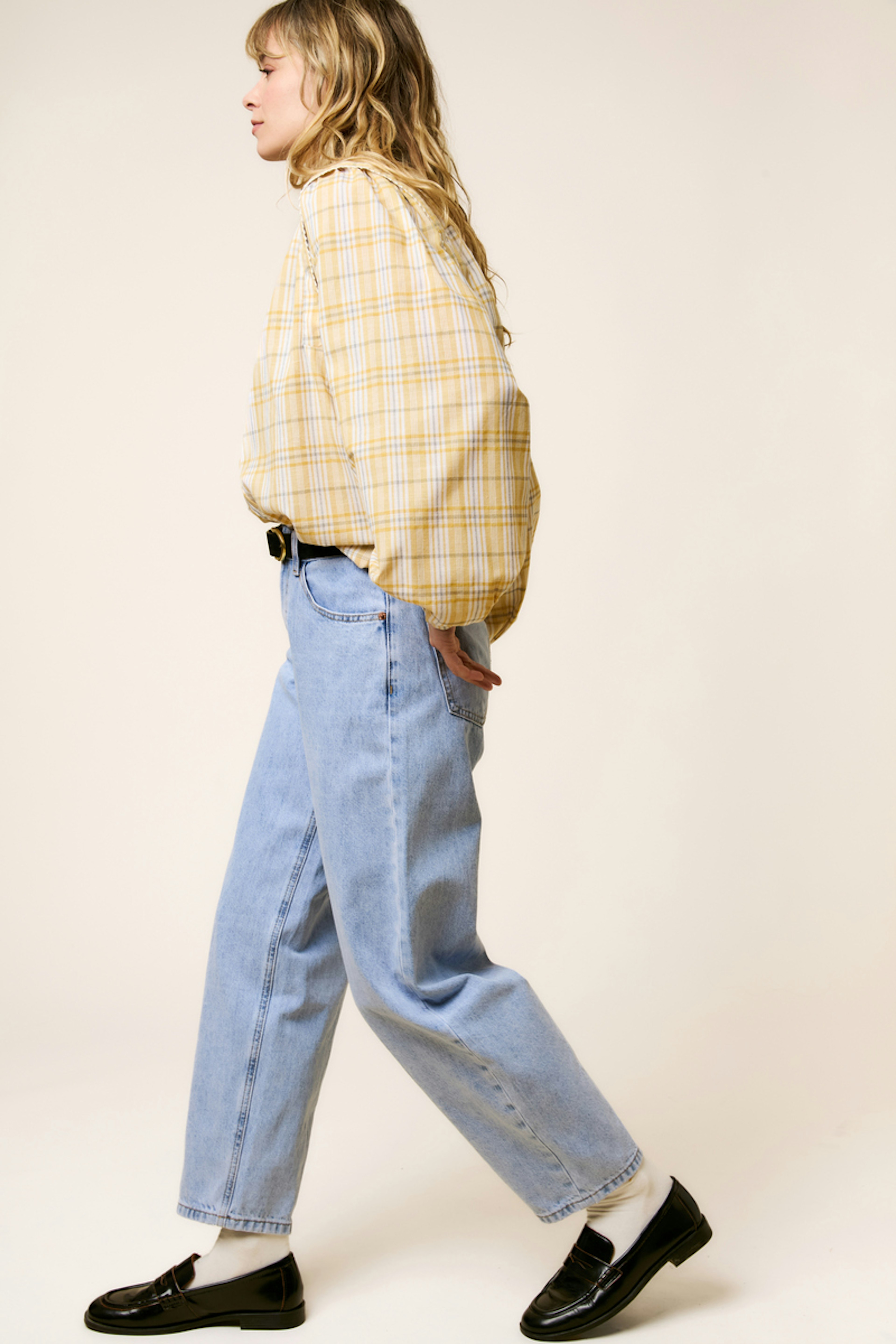 Associez ce jean décontracté avec un pull doux et des bottines pour un style casual-chic. Ajoutez un trench léger pour les journées fraîches. • Jean en coton • Coupe décontractée • Taille haute • Jambes droites • Teinte bleu clair