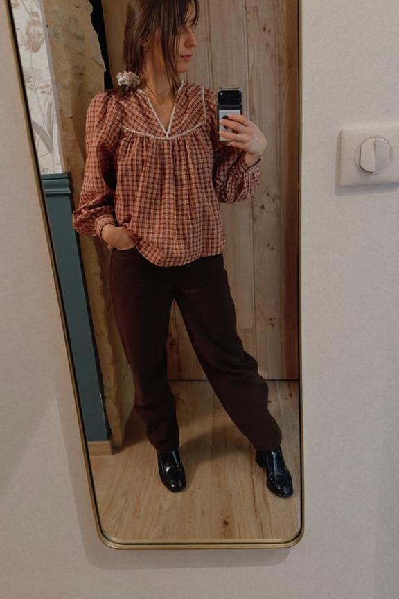 “j'ai adoré! effet loose très agréable à porter, marron qui change du noir. j'hésite à le garder!”