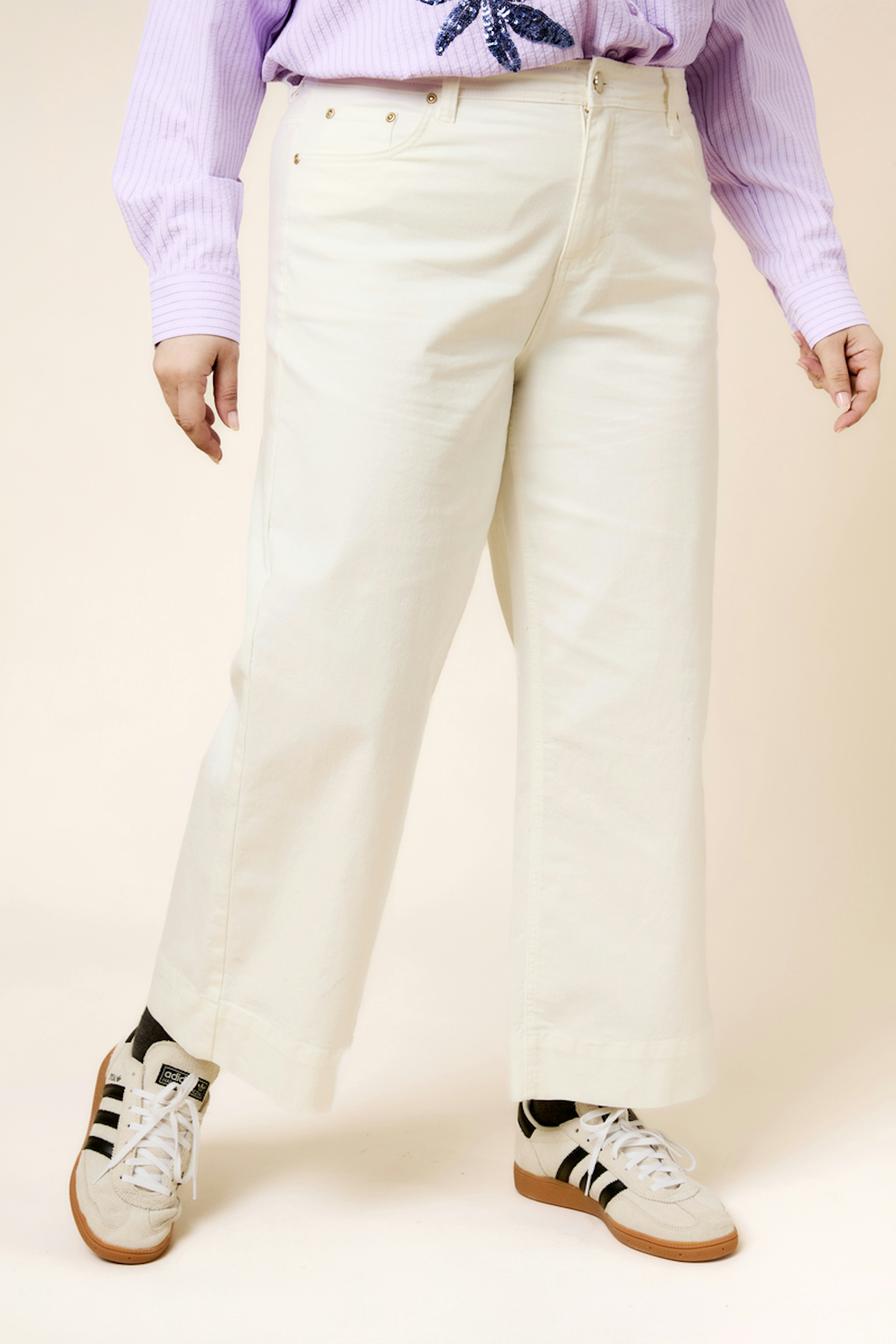 Associez ce pantalon avec un haut ajusté et des sandales pour une allure chic et décontractée. Parfait en toute saison. • Pantalon ample • Coupe large • Taille haute • Longueur cheville • Ceinture tressée intégrée